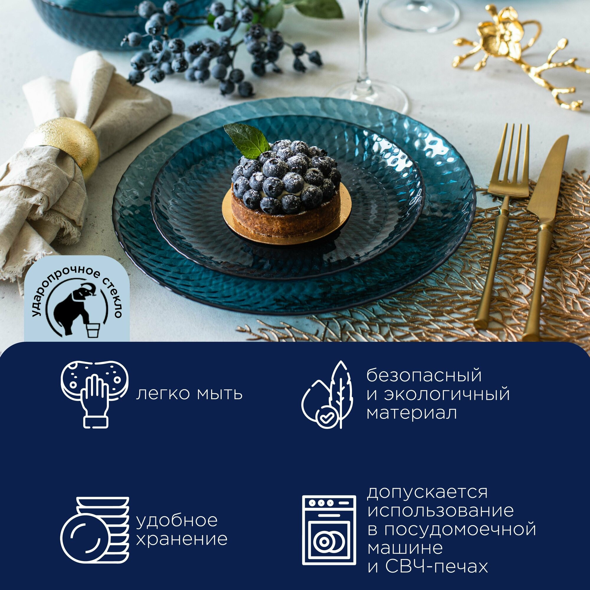 Этот набор столового сервиза состоит из 19 предметов, включающих 6 тарелок диаметром 25 см, 6 тарелок диаметром 19 см и 6 тарелок диаметром ___. Изготовленный из прочного стекла, он прослужит Вам долгие годы благодаря своей надежности и высокому качеству.