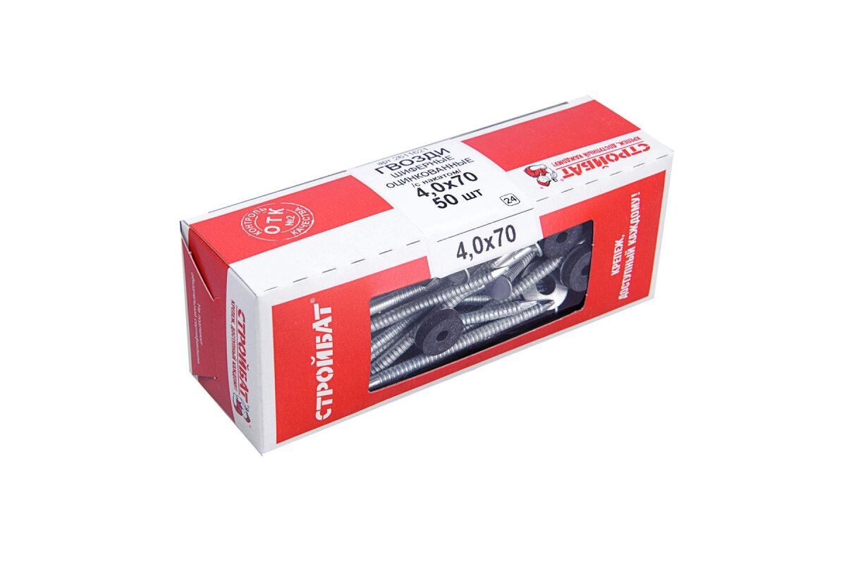 Гвозди Стройбат шиферные накатные оцинкованные 4 х 70 50 штук
