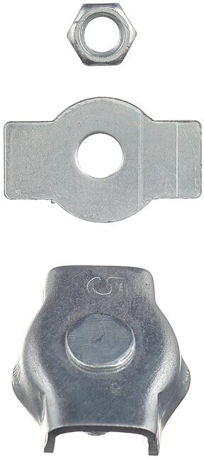Зажим троса - это такелажный элемент, применяемый при сращивании стальных тросов и канатов. Также он используется для создания петель на концах троса, каната. Применяется к такелажному, подъемному оборудованию для буксировки и транспортировки.