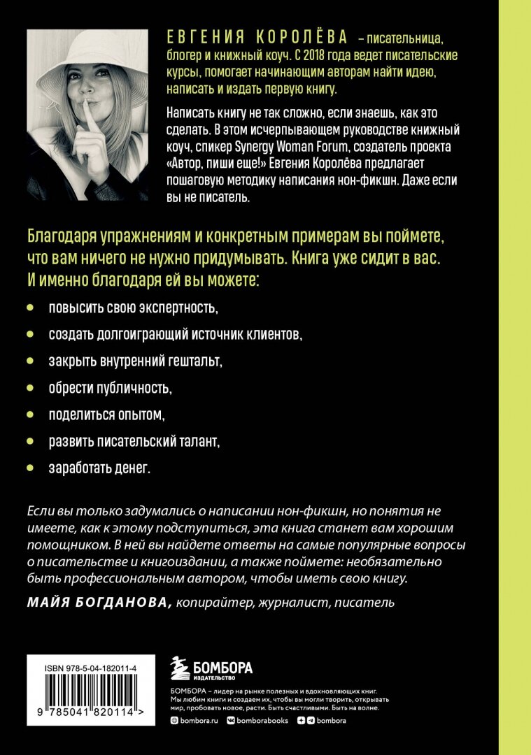Написать книгу не так сложно, если знаешь, как это сделать. В этом исчерпывающем руководстве книжный коуч, спикер Synergy Woman Forum, создатель проекта «Автор, пиши еще!» Евгения Королева, предлагает пошаговую методику написания нон-фикшен. Даже если вы не писатель.