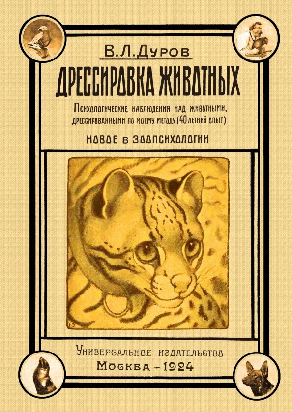 Репринт с издания. Москва, 1924. Дуров в книге описал психологические опыты на животных, в частности, по телепатии, психологии, парапсихологии и т. д. Для работы привлекал В. М. Бехтерева и И. П. Павлова. Приведены результаты опытов. с 79 илл. Владимир Леонидович Дуров (1863—1934) — российский и советский артист цирка, дрессировщик, заслуженный артист Республики (1927). На арене с 1879 года. С 1883 — в цирке-зверинце Винклера в Москве, затем в цирке Безано. Начинал артистическую карьеру как силач, звукоподражатель, иллюзионист, художник-моменталист, куплетист и клоун. В зверинце Дуров начал выступать как дрессировщик. С 1887 — в московском цирке Саламонского —выступал как клоун-дрессировщик и сатирик. Дрессировку животных построил на вырабатывании условных рефлексов путём поощрения: животное получало еду за сделанный трюк. Для зарабатывания денег в 1912 г. в своём доме, театр живого уголка, который позже стал называться «Уголок Дурова». Нами изданы в 2023 г. книги Дурова: Звери дедушки Дурова. Записки Дуровской свиньи; О сильных мира того; Пернатые артисты: (Дрессированные птицы дедушки Дурова); Научная дрессировка промыслово-охотничьих собак.
