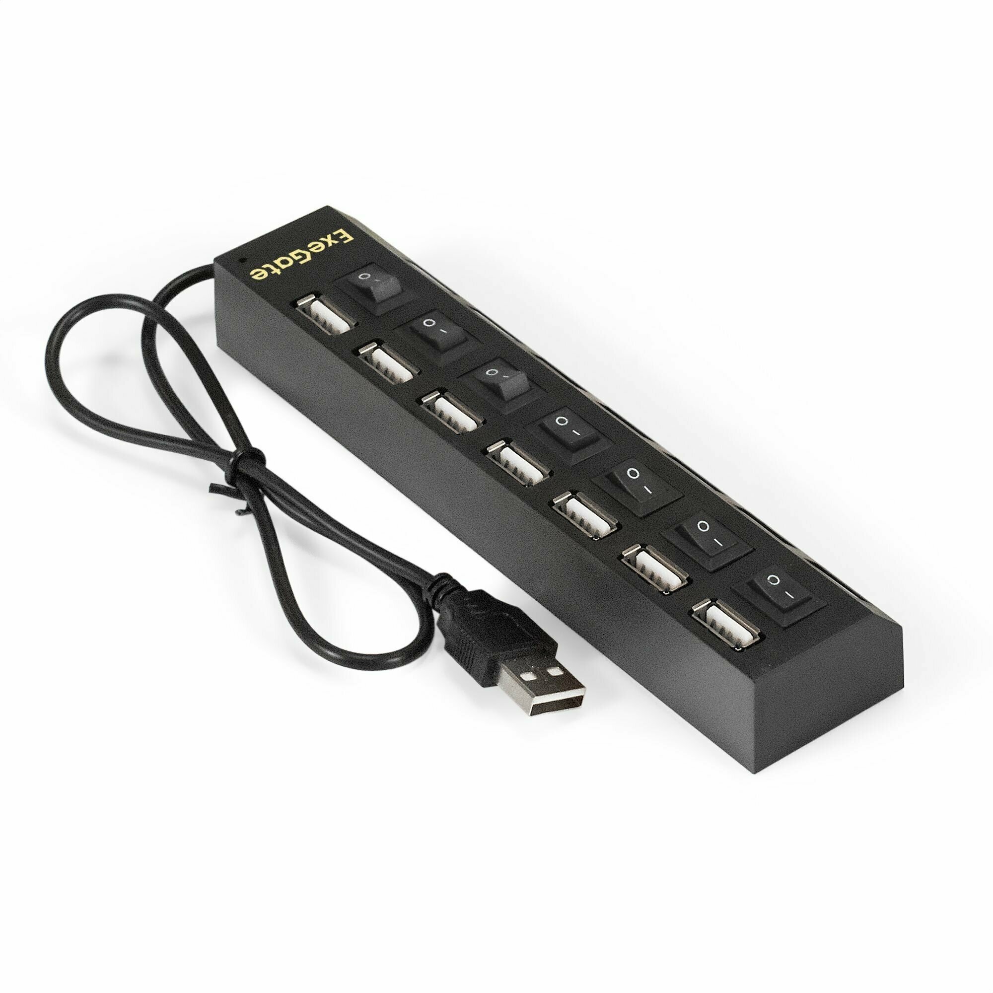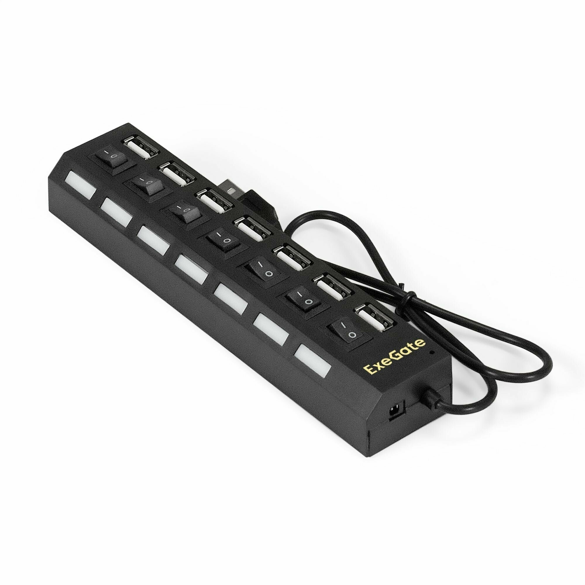 Концентратор Exegate 7-в-1 (кабель-адаптер USB2.0 --> 7xUSB2.0 кнопки включения/отключения для каждого порта Plug&Play черный) EX293978RUS