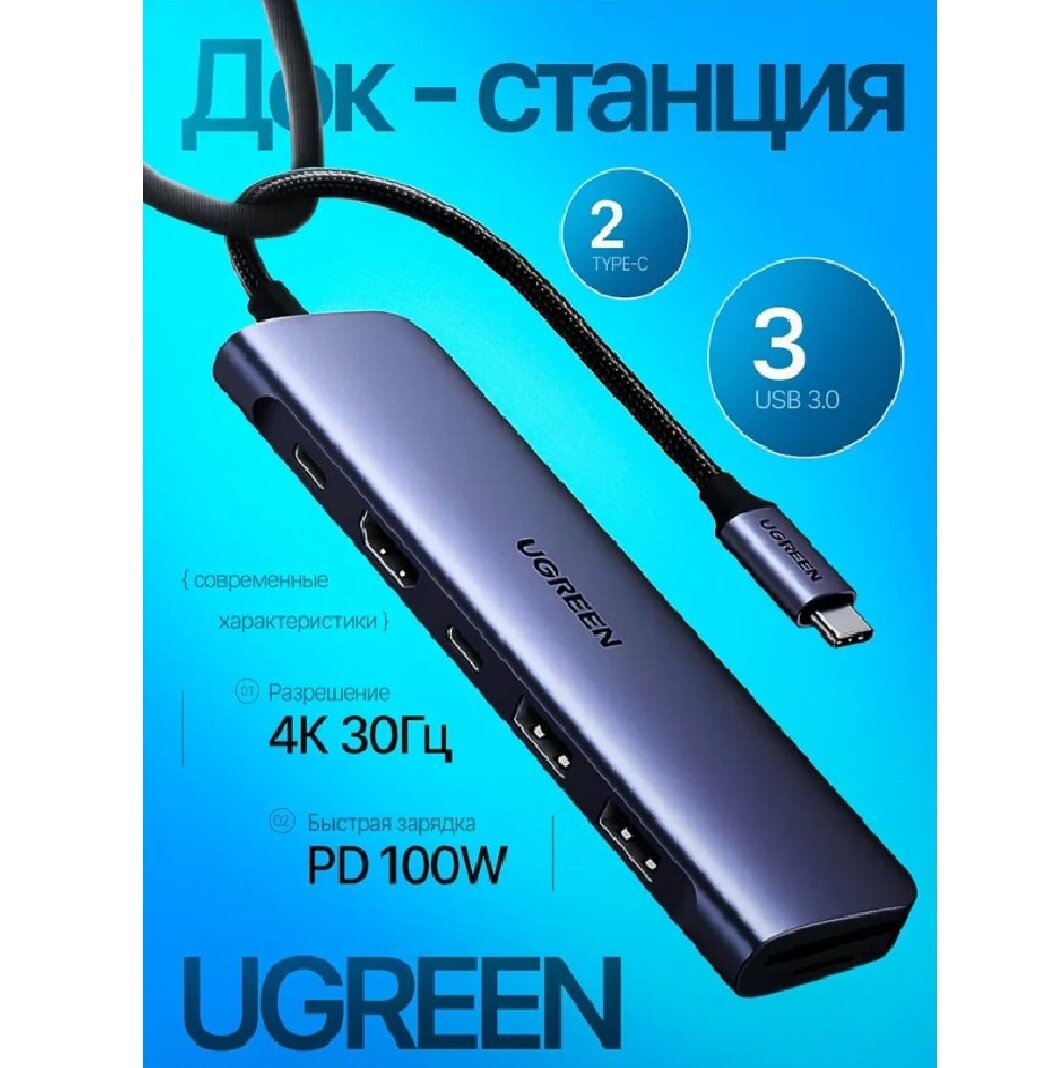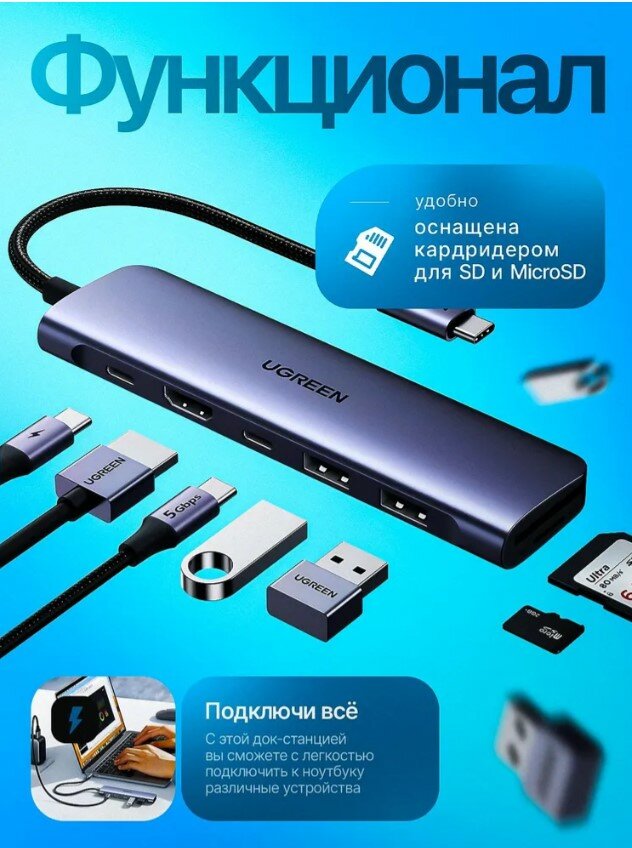 Сервис сравнения цен СкидкаГИД предлагает сравнить цены на товар «Концентратор UGREEN USB-C To HDMI+2*USB 3.0 A+ USB-C+SD/TF+PD Converter. Цвет: серый космос CM195»