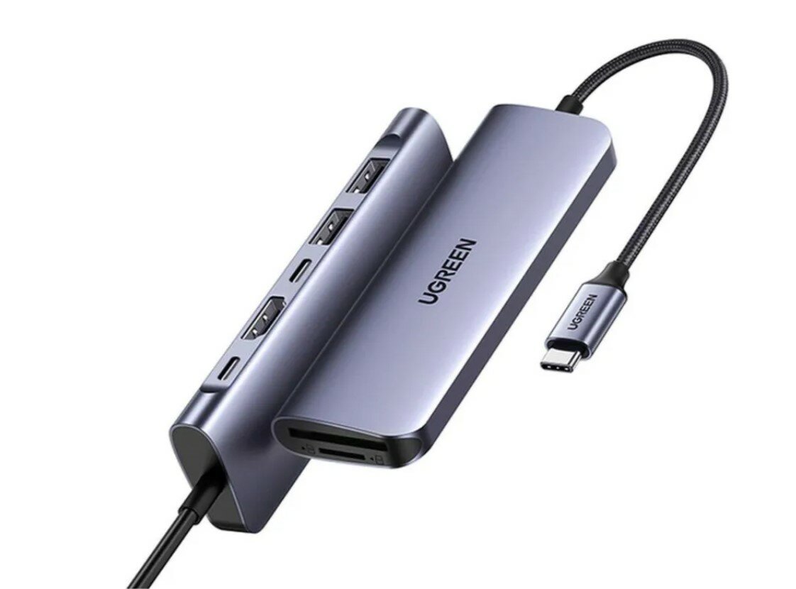 Концентратор UGREEN USB-C To HDMI+2*USB 3.0 A+ USB-C+SD/TF+PD Converter. Цвет: серый космос CM195