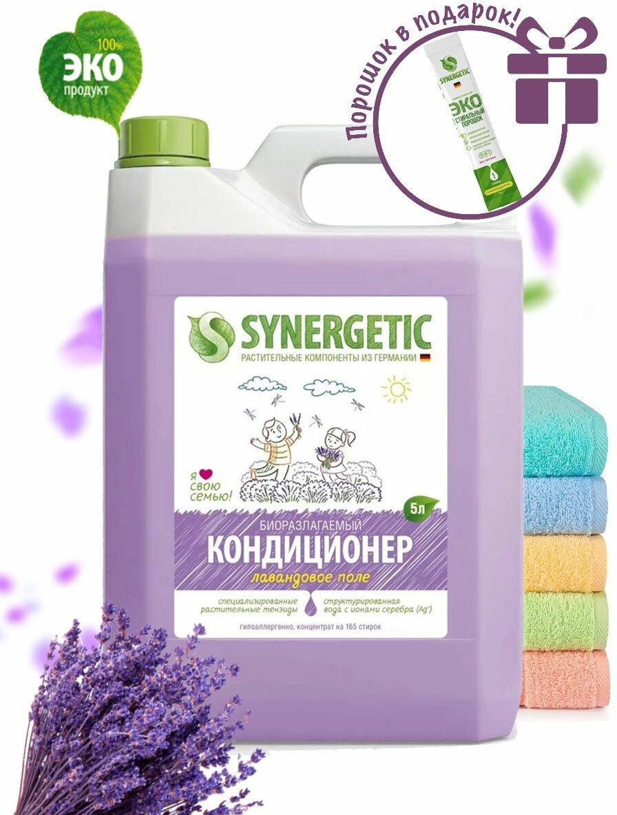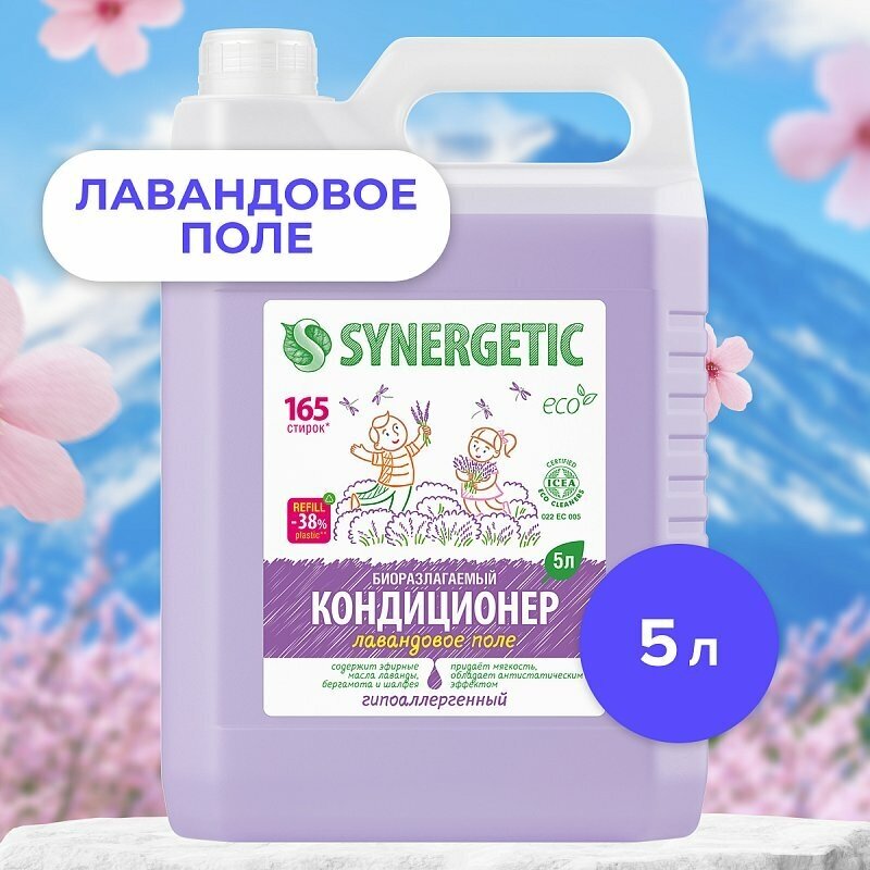Гипоаллергенный кондиционер-ополаскиватель для белья SYNERGETIC Лавандовое поле высокоэффективное средство, бережно ухаживающее за всеми типами ткани и придающее особую мягкость белью после стирки. Обладает антистатическим эффектом. Комплекс растительных К-тензидов обеспечивает легкую глажку белья. Гипоаллергенная отдушка с маслами лаванды, бергамота и шалфея придаёт белью нежный аромат. Подходит для ручной и машинной стирки, полностью выполаскивается из тканей. Международный экологический сертификат ICEA подтверждает биоразлагаемость, безопасность и эффективность средства. Гипоаллергенный кондиционер-ополаскиватель нейтрализует остатки средств для стирки на тканях. Безопасен для септических установок.