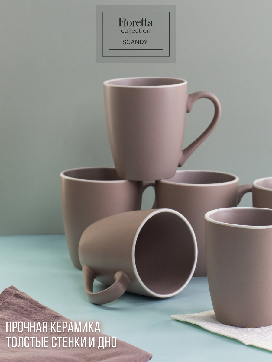 Стильная керамическая кружка Scandy Cappuccino 355 мл от Domenik: идеальный выбор для уютных завтраков, работы и подарков. Подходит для СВЧ и посудомоечной машины.