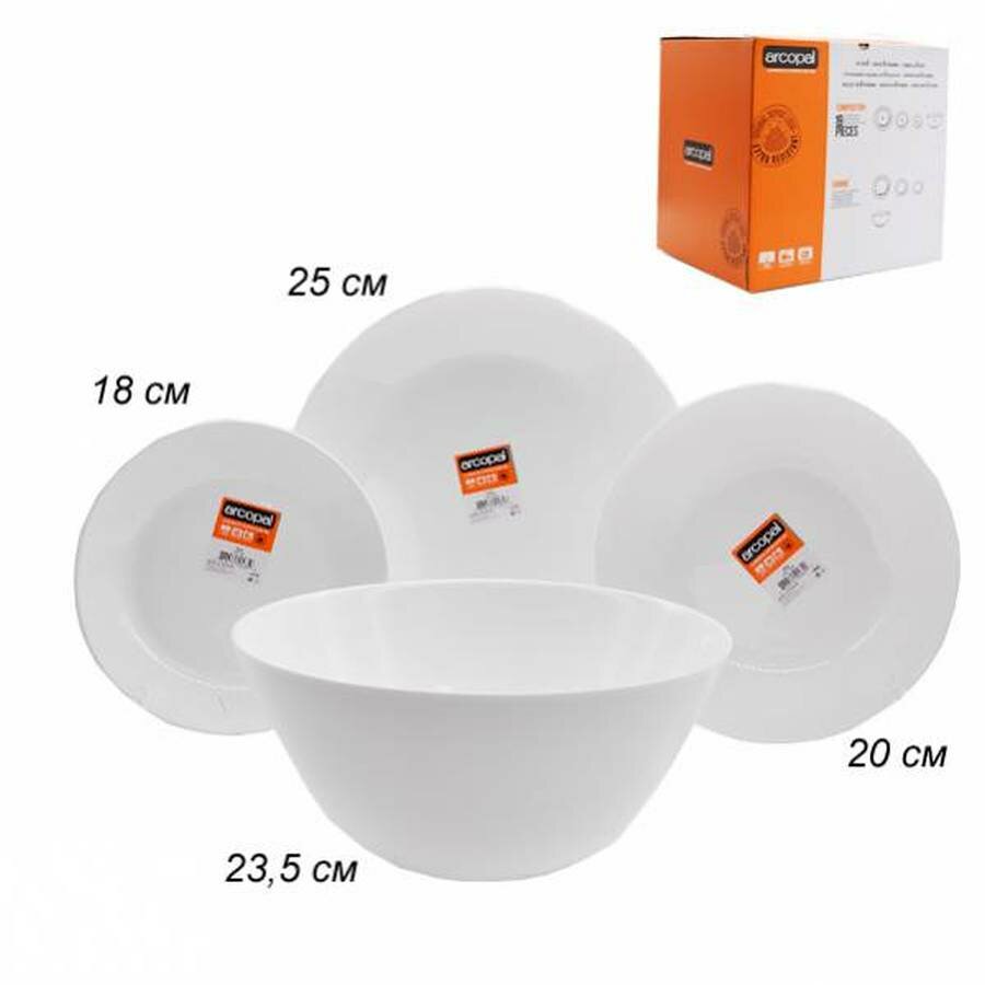 | Состав набора | тарелка десертная 18 см - 6 шт; тарелка обеденная 25 см - 6 шт; тарелка глубокая 20 см - 6 шт; салатник большой 24 см - 1 шт |