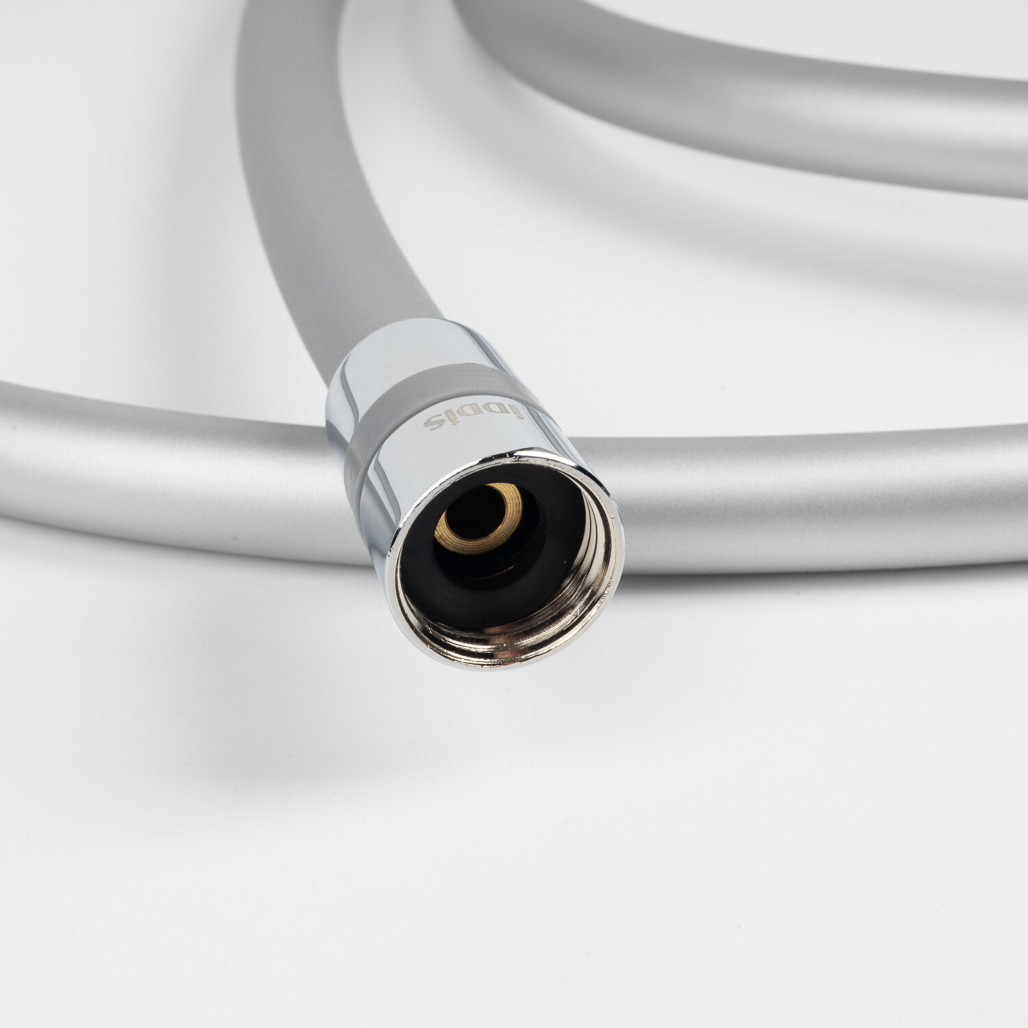Ультрагибкий шланг с оболочкой из термостойкого силикона для ручных душевых леек. Универсальное соединение G ½” позволяет использовать с любой хромированной лейкой. Приятный на ощупь: очень гладкий и бархатистый.• Износостойкий и прочный, можно не бояться изгибов и заломов. • Гибкий и эластичный сразу при покупке – не требует отвисания и распрямления. Эстетично смотрится, удобно пользоваться.• Просто ухаживать: протирать салфеткой, можно с мягким моющим средством. Силикон не накапливает известь, не подвержен грибку.• Не оставляет царапин при контакте с ванной.• Стойкий цвет – краска глубоко и прочно проникает в силикон.• Температурный диапазон использования от -50° до +280°С позволяет использовать на даче – шланг не перемерзнет в летнем доме в несезон. Хорошо держится при гидроударах.• Надежно сидит в держателе за счет резинового уплотнительного кольца на конической гайке.Гарантия на душевые аксессуары IDDIS® – 3 года.