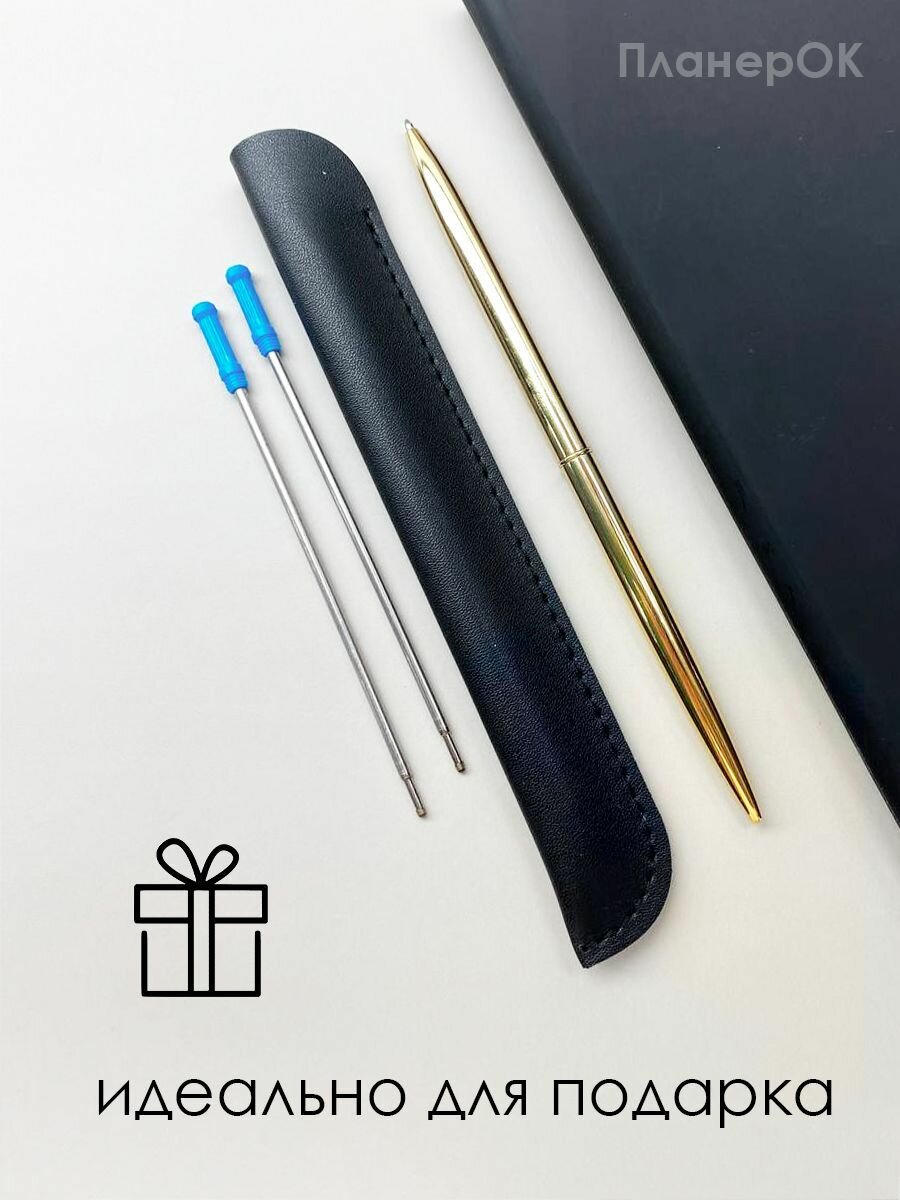 Ручка шариковая сделана из металла, имеет достаточный вес, чтобы удобно и приятно держать в руке. Ручка оснащена черным стержнем, в комплекте идут 2 дополнительных стержня - черный и синий, либо 2 чёрных, зависит от поставки). Стержни стандартного типа. Для удобного хранения к ручке прилагается качественный чехол-кейс из экокожи. Ручка подарочная в футляре - недорогой и нужный подарок мужчине на день рождения, подруге, маме, парню, папе, мужу, женщине, бабушке, сестре, для друга, девушке, брату. Ручка подойдет в подарок учителю, начальнику и коллеге.