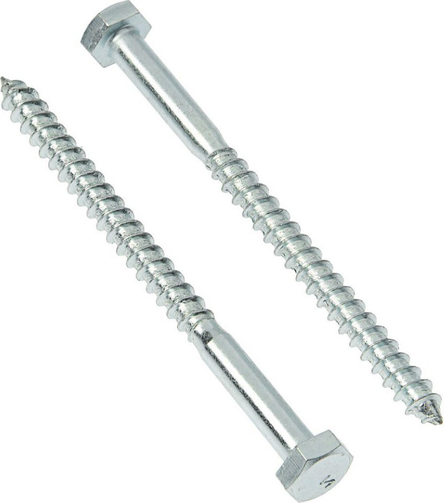 Стальные оцинкованные шурупы с шестигранной головкой для прочного крепления деревянных элементов конструкций, установки сантехники, для монтажа в бетон или кирпич совместно с подходящими дюбелями.