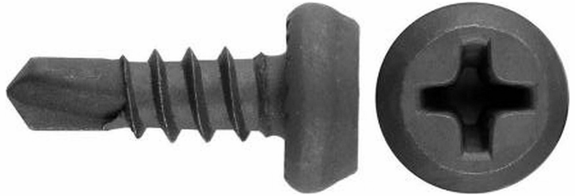 Данный саморез имеет сверловидный наконечник, оцинкованное и покрытие и шлиц Philips №2. Сверловидный наконечник дает возможность просверливать сталь до 2 мм без предварительного сверления отверстия.