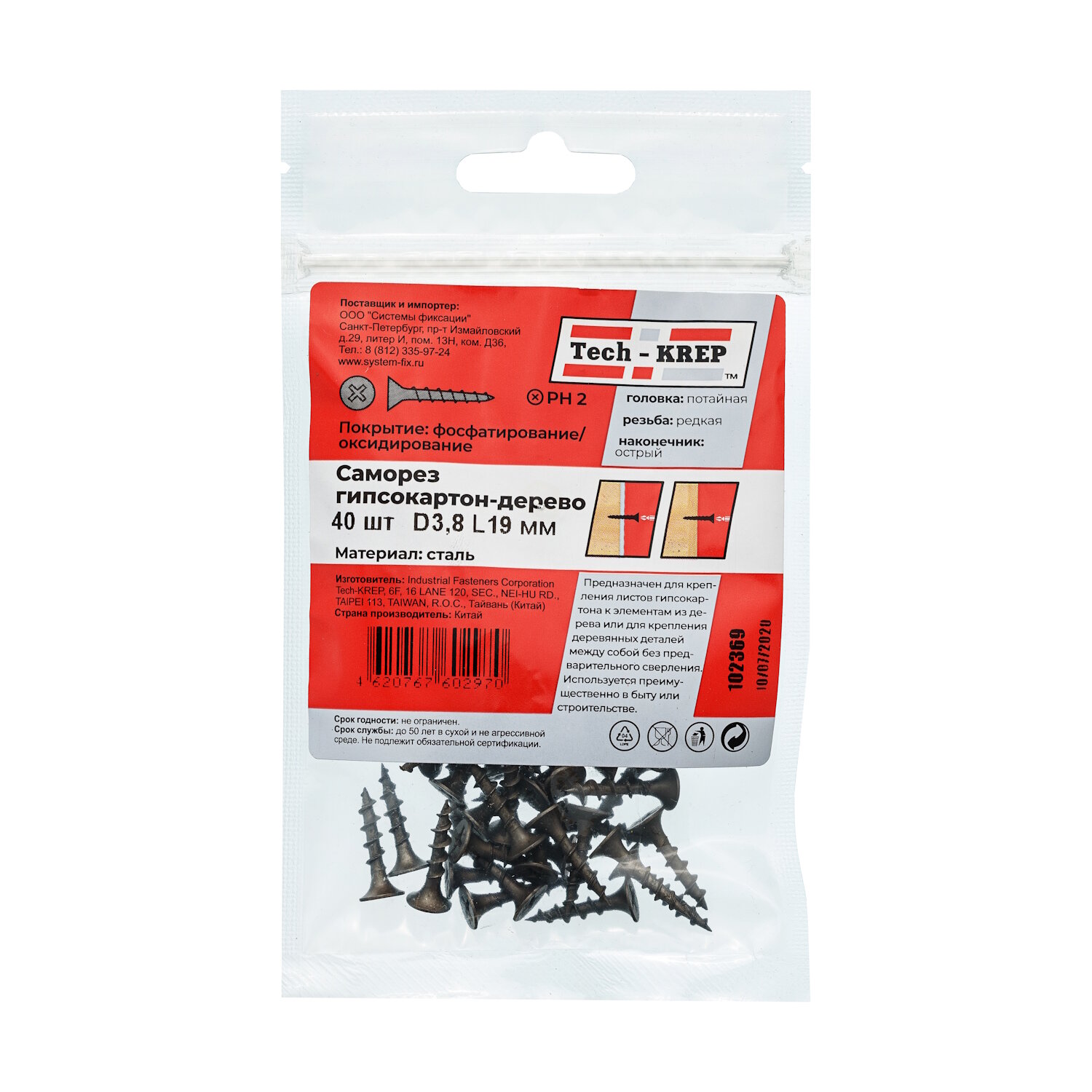 Саморез ШСГД Tech-Krep 38х19 40 шт в пакете 3,8х19 40 шт.