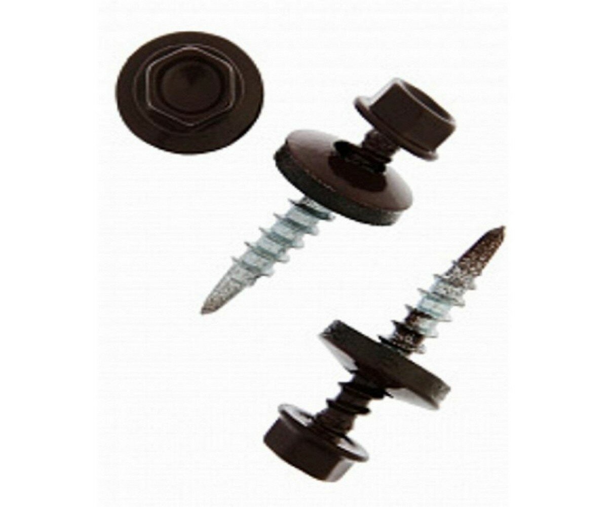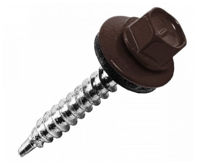 Саморезы имеют шестигранную головку и шайбу с резиновой уплотняющей прокладкой для герметизации соединения. Уменьшенное сверло на конце самореза позволяет с легкостью засверливаться в деревянные основания. Производятся из оцинкованной стали. Саморезы имеют полную резьбу.