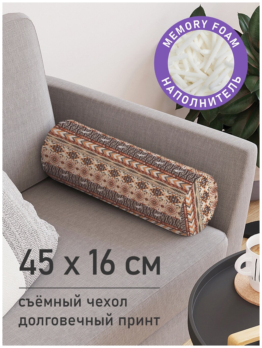 Декоративная подушка JoyArty pcu_10211 в ассортименте 45x16см Декоративная подушка валик на молнии Полосы с орнаментом 45 см