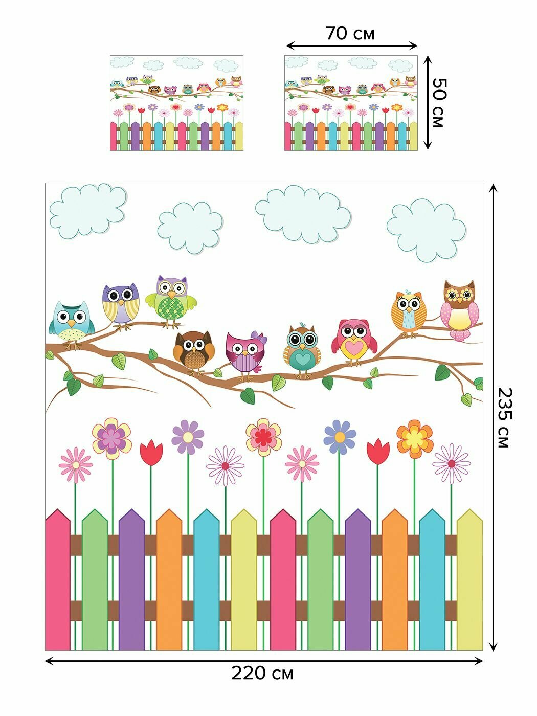 Модель: Покрывало Веселые совы 235x220 и две наволочки 70х50