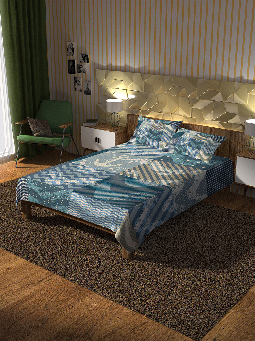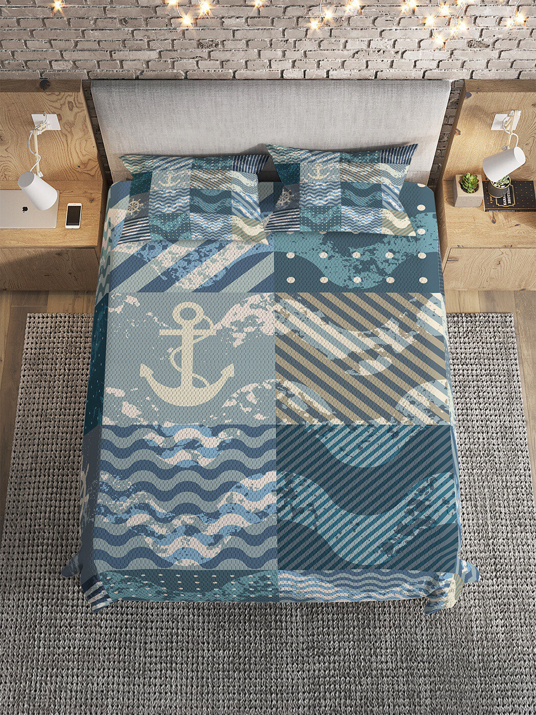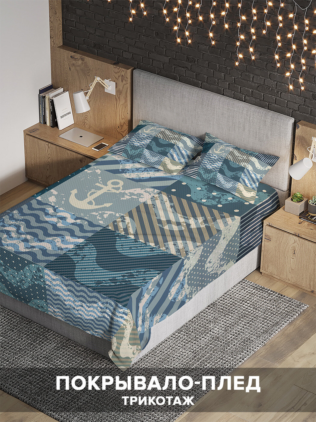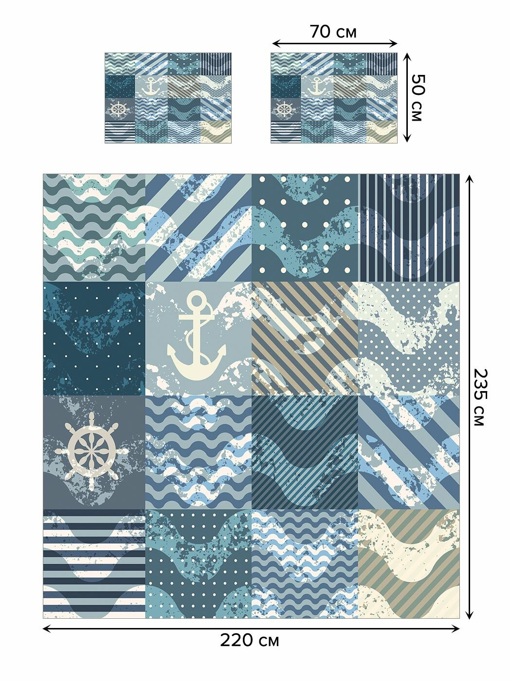 Модель: Покрывало Плитка с морскими узорами 235x220 и две наволочки 70х50