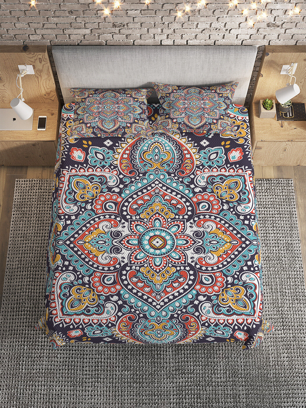 Модель: Покрывало на 2-спальную кровать Цветочный орнамент 235х220 и две наволочки 70x50
