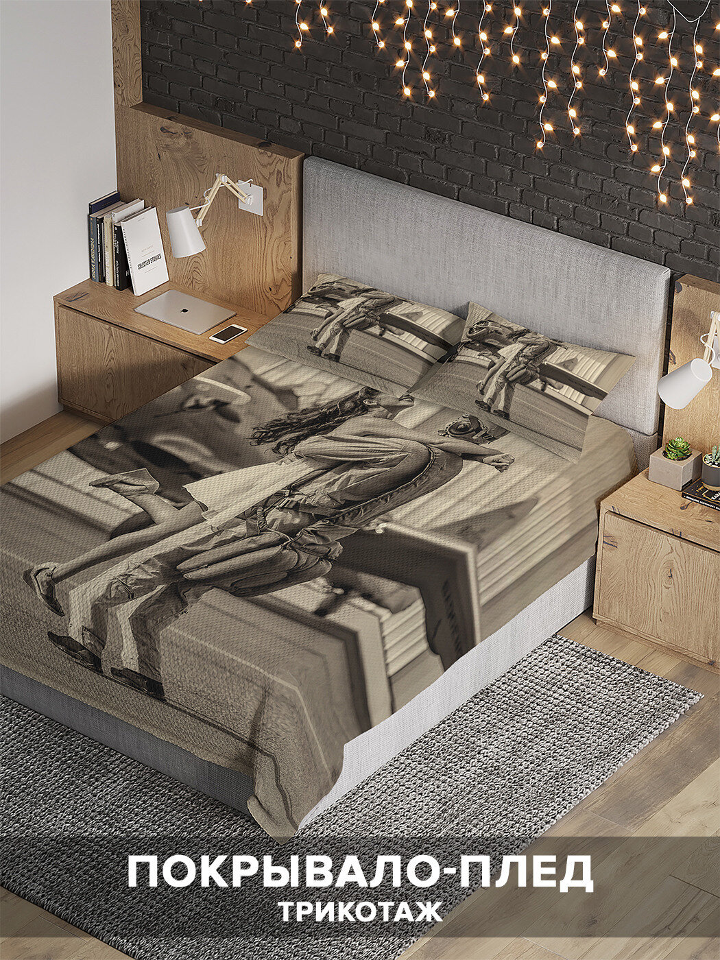 Модель: Покрывало на 1.5-спальную кровать Девушка летчика 220х160 и две наволочки 70x50