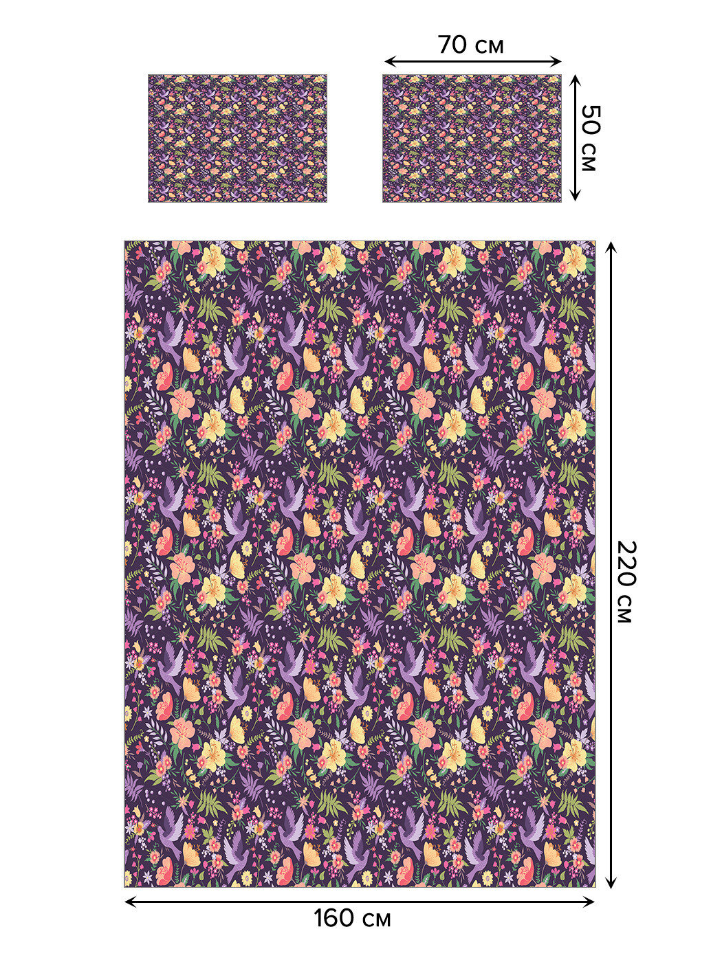 Покрывало с чехлами Ambesonne bcsl_73574 160x220 см фиолетовый Покрывало на 1.5-спальную кровать Абстрактные цветы 220х160 и две наволочки 70x50 (размер: 1.5-спальный)