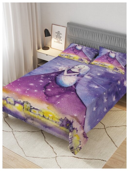 Покрывало с чехлами Ambesonne bcsl_19077 160x220 см фиолетовый Покрывало Ночь накрывает город 160х220 и две наволочки 50x70 (размер: 1.5-спальный)