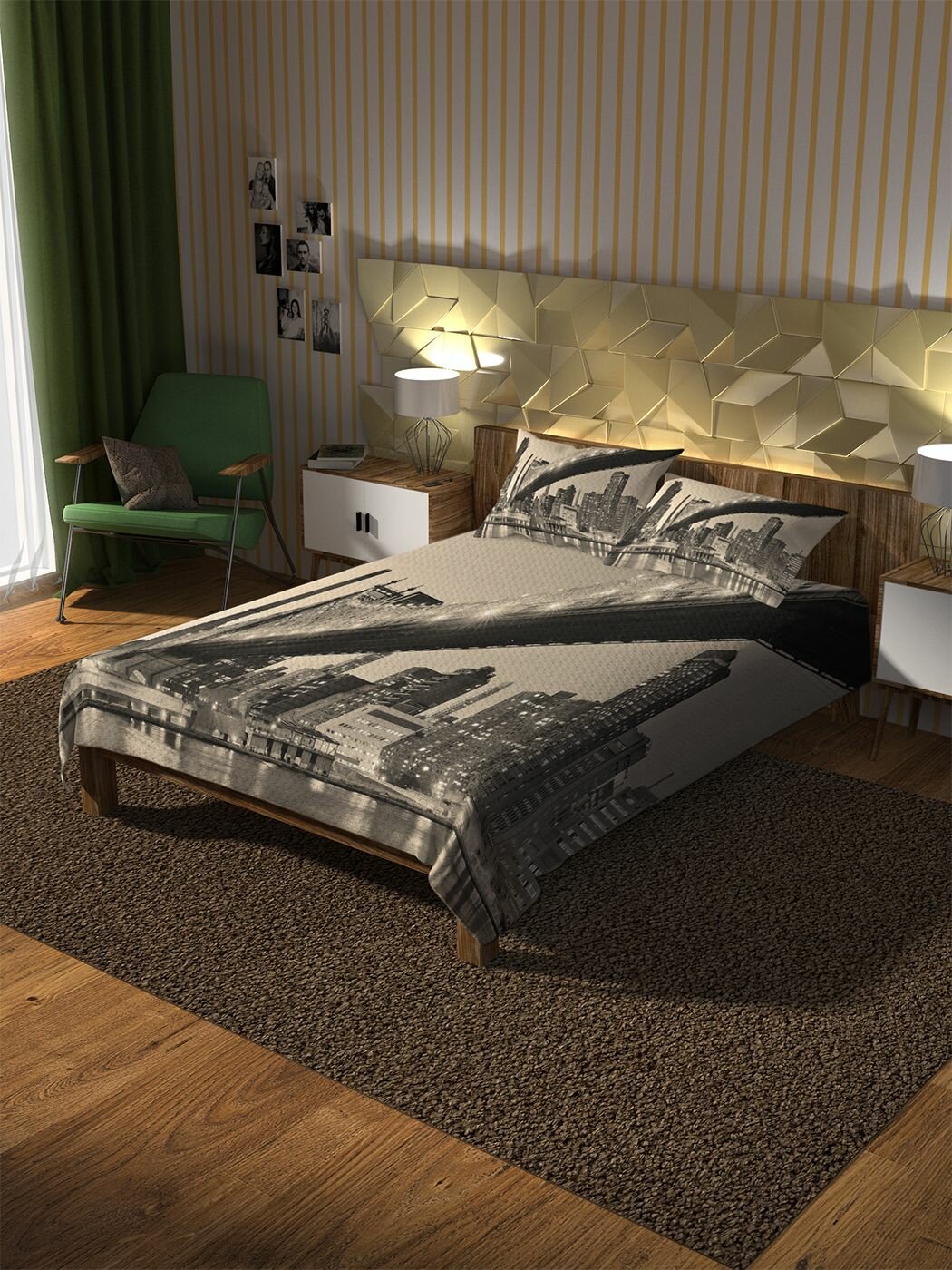 Модель: Покрывало Сепия огней мегаполиса 220х235 и две наволочки 50x70