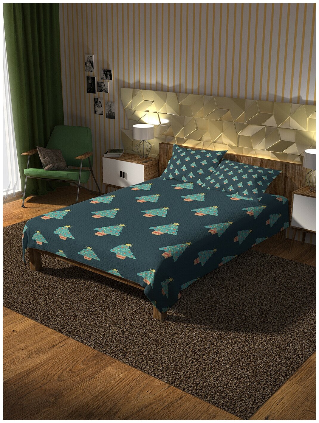 Модель: Покрывало Поле из елок 160х220 и две наволочки 50x70