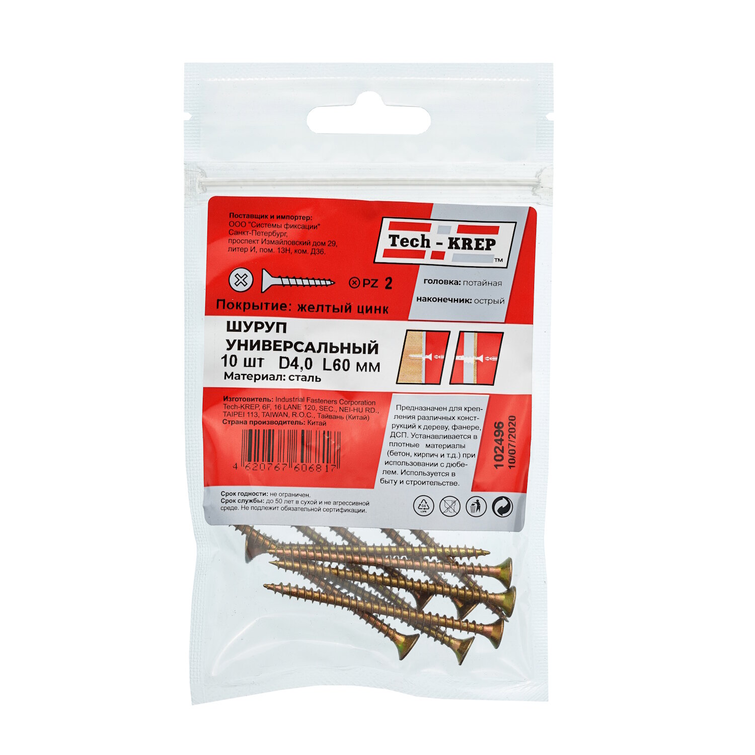 Саморез ШУж Tech-Krep 40х60 с потайной головкой 10 шт в пакете