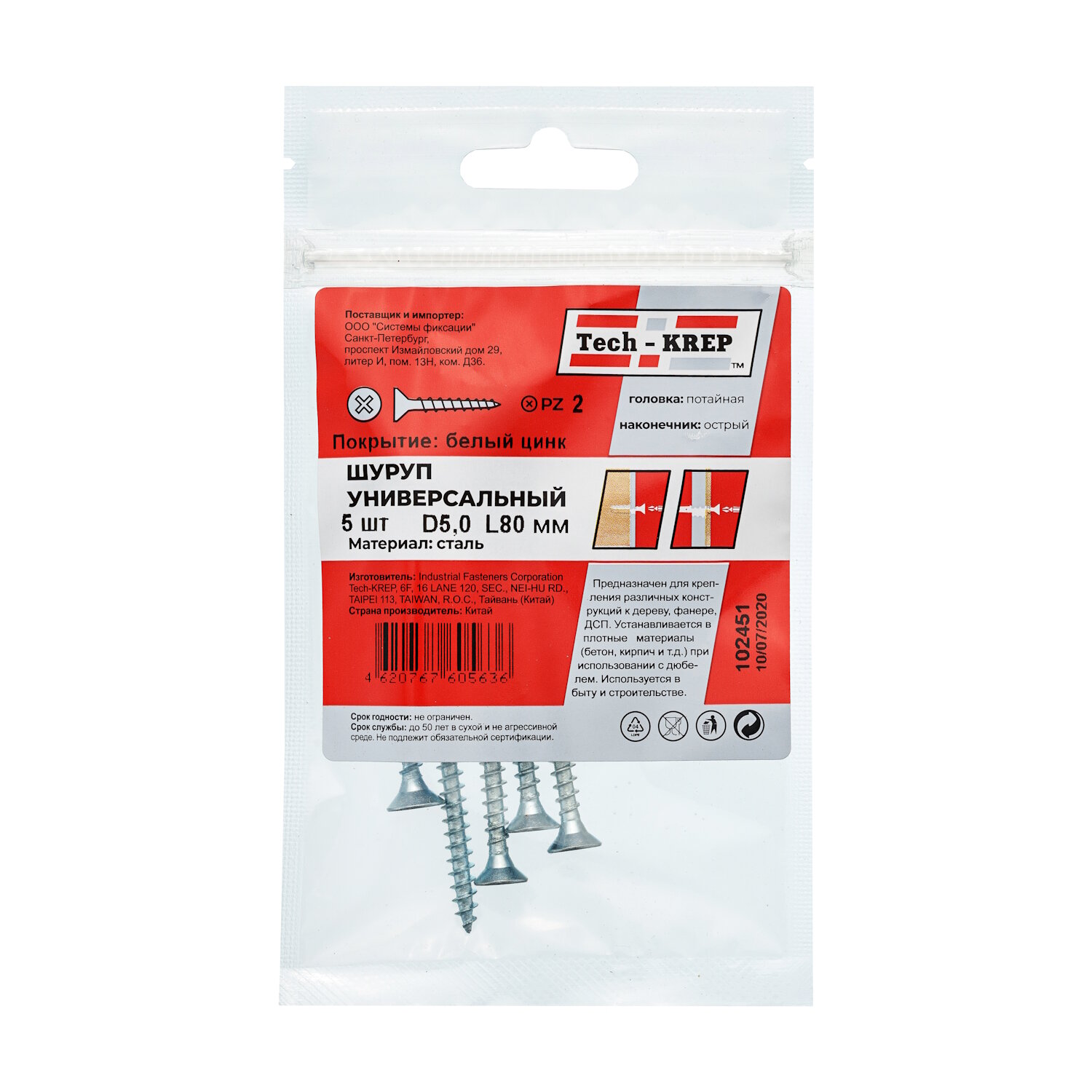 Саморез ШУц Tech-Krep 50х80 с потайной головкой 5 шт в пакете