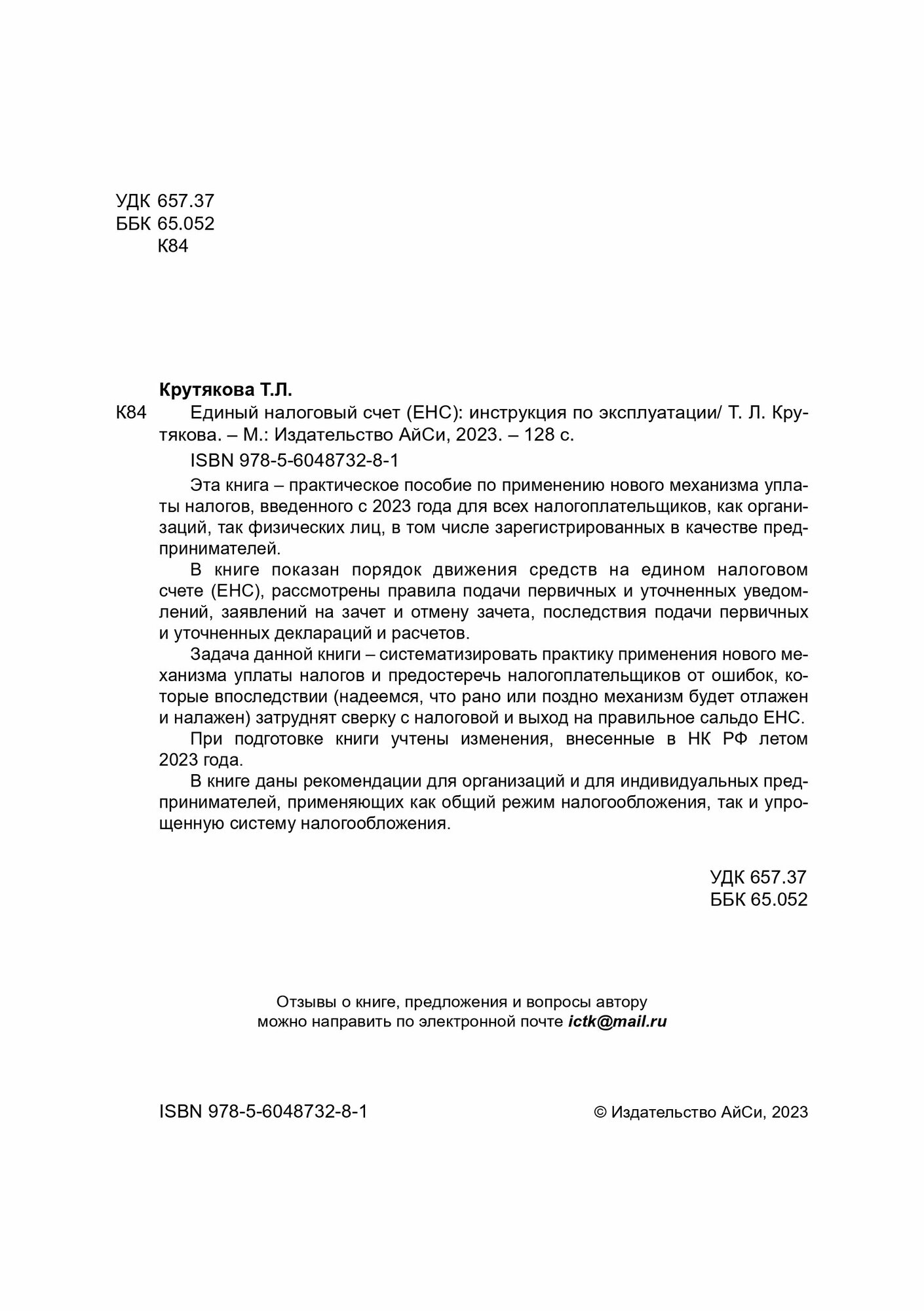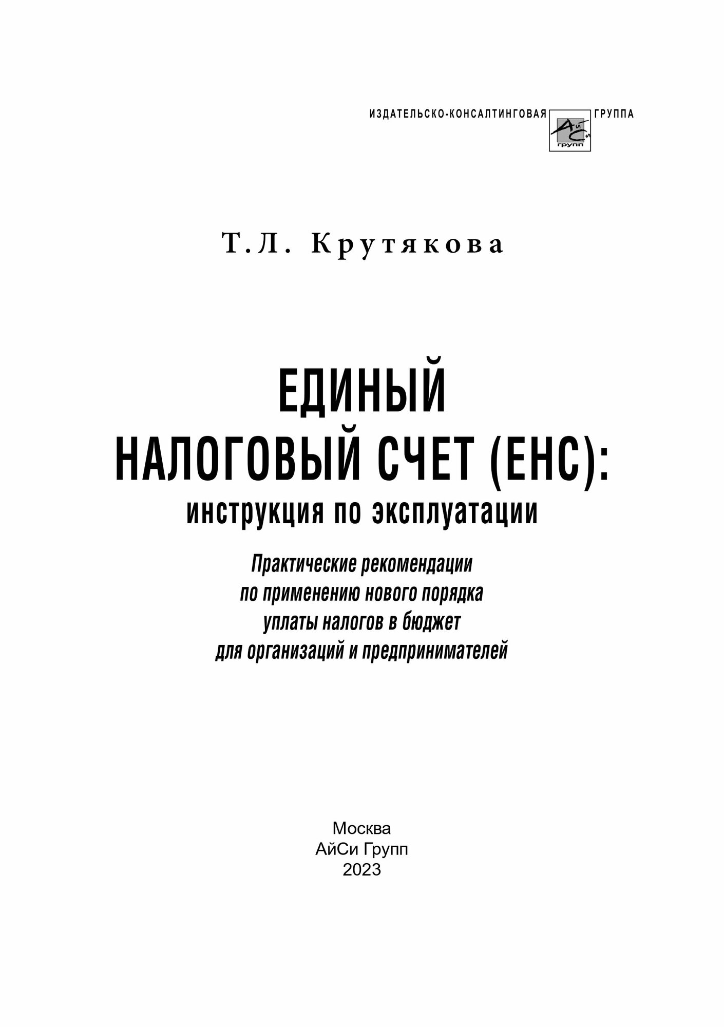 Единый налоговый счет. Инструкция по эксплуатации (Крутякова Татьяна Леонидовна); АйСи Групп, 2023