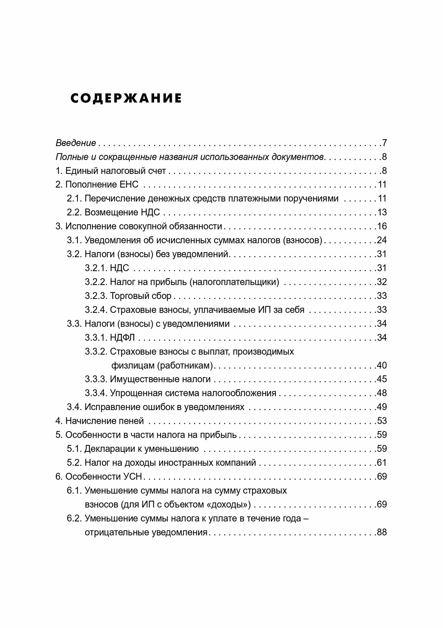 В книге показан порядок движения средств на едином налоговом счете (ЕНС), рассмотрены правила подачи первичных и уточненных уведомлений, заявлений на зачет и отмену зачета, последствия подачи первичных и уточненных деклараций и расчетов.