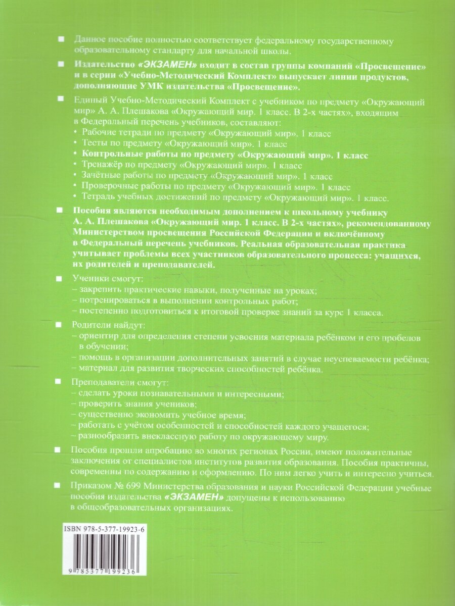 Сервис сравнения цен СкидкаГИД предлагает сравнить цены на товар «Книга: Окружающий мир. 1 класс. Контрольные работы к учебнику А. А. Плешакова. Часть 2. ФГОС (Крылова Ольга Николаевна, Цитович Галина Ивановна); Экзамен, 2024»
