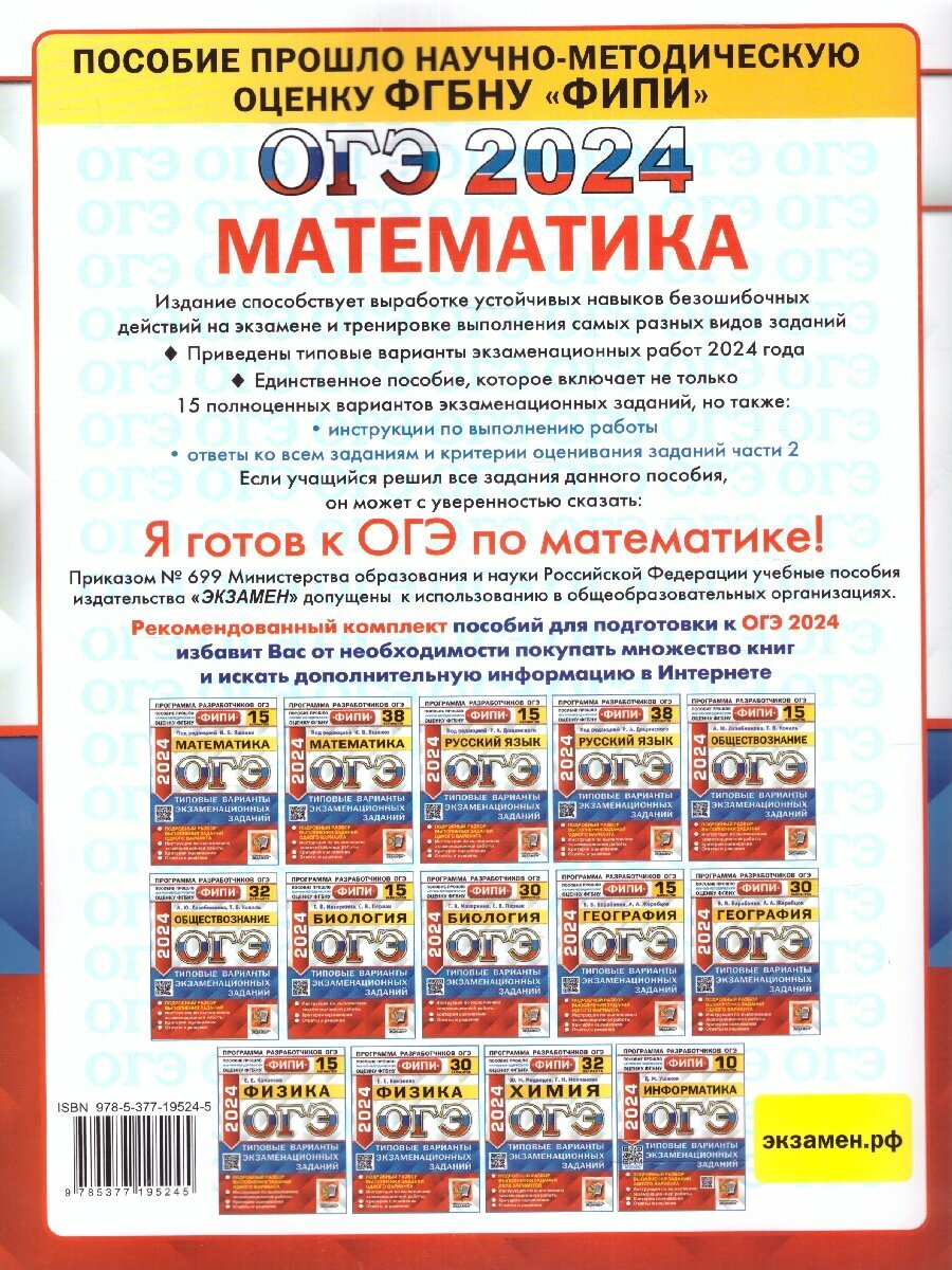 ОГЭ-2024. Математика. 15 вариантов. Типовые варианты экзаменационных заданий (Рослова Лариса Олеговна, Ященко Иван Валериевич, Высоцкий Иван Ростиславович); Экзамен, 2024