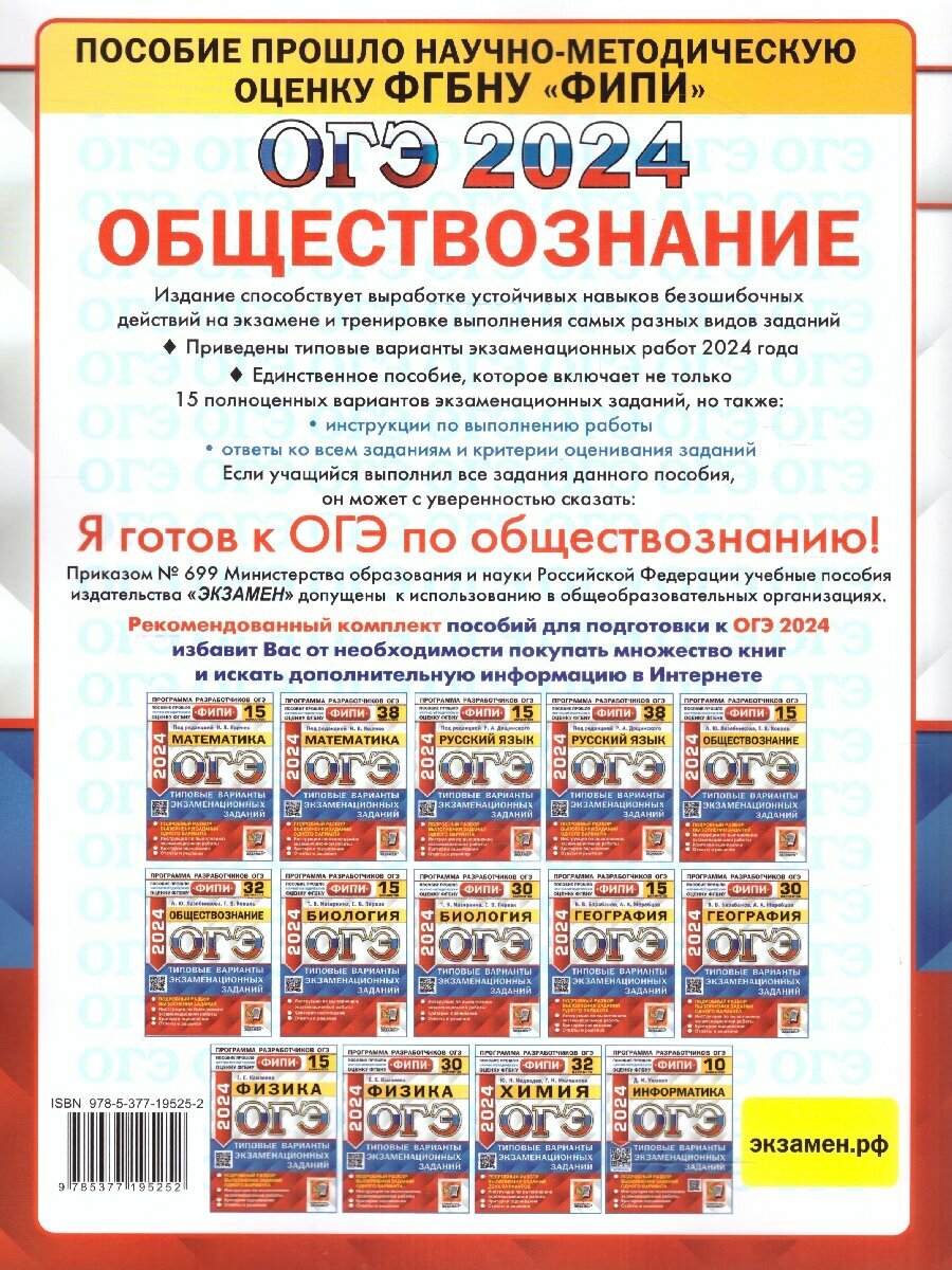 ОГЭ-2024. Обществознание. 15 вариантов. Типовые варианты экзаменационных заданий (Лазебникова Анна Юрьевна, Коваль Татьяна Викторовна); Экзамен, 2024