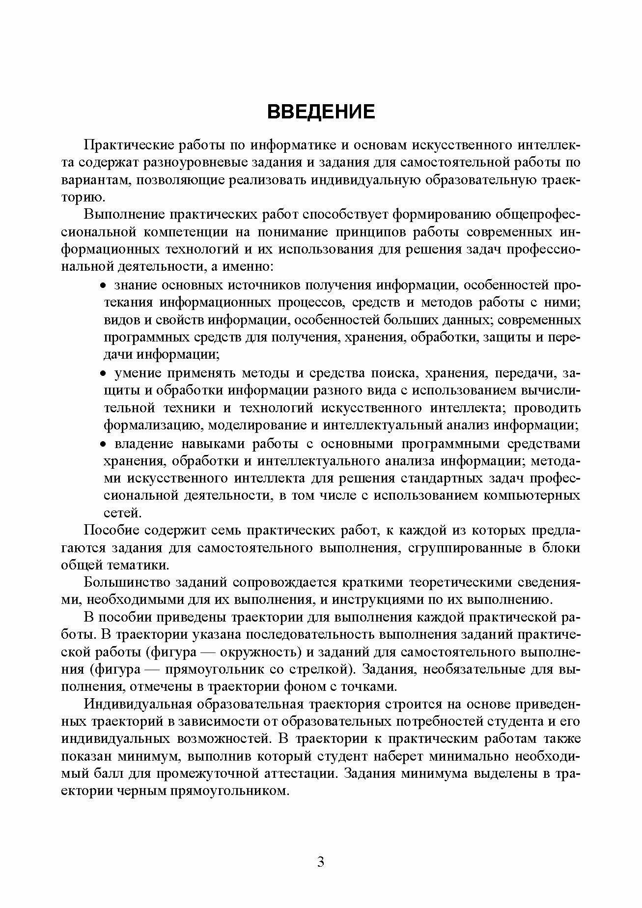 Данное учебное пособие отражает вышеназванные изменения в образовательных программах бакалавриата и специалитета высшей школы и предназначено студентам I курса для выполнения практических работ по дисциплине «Информатика и основы искусственного интеллекта», а также других дисциплин, изучающих применение современных информационных технологий для решения профессиональных задач.