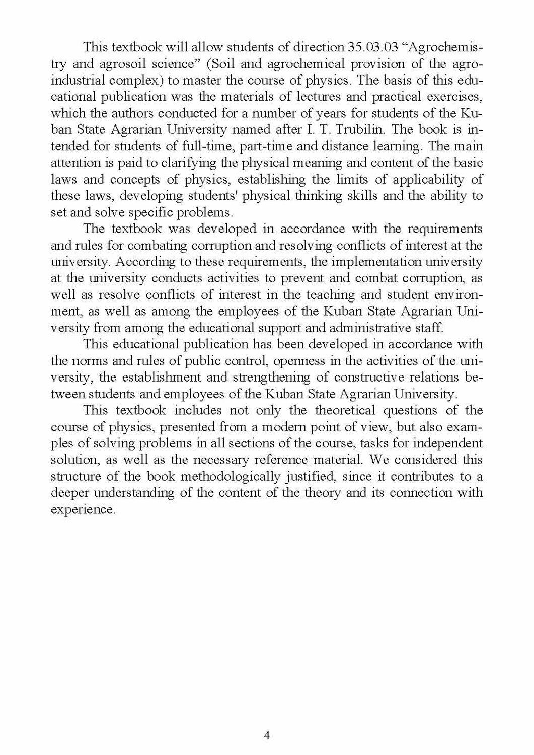 Учебник содержит как теоретический материал, так и примеры решения типовых задач по таким разделам физики, как «Механика», «Молекулярная физика» и «Термодинамика». Представлены методические указания по решению задач, а также база задач для самостоятельного решения студентами.
