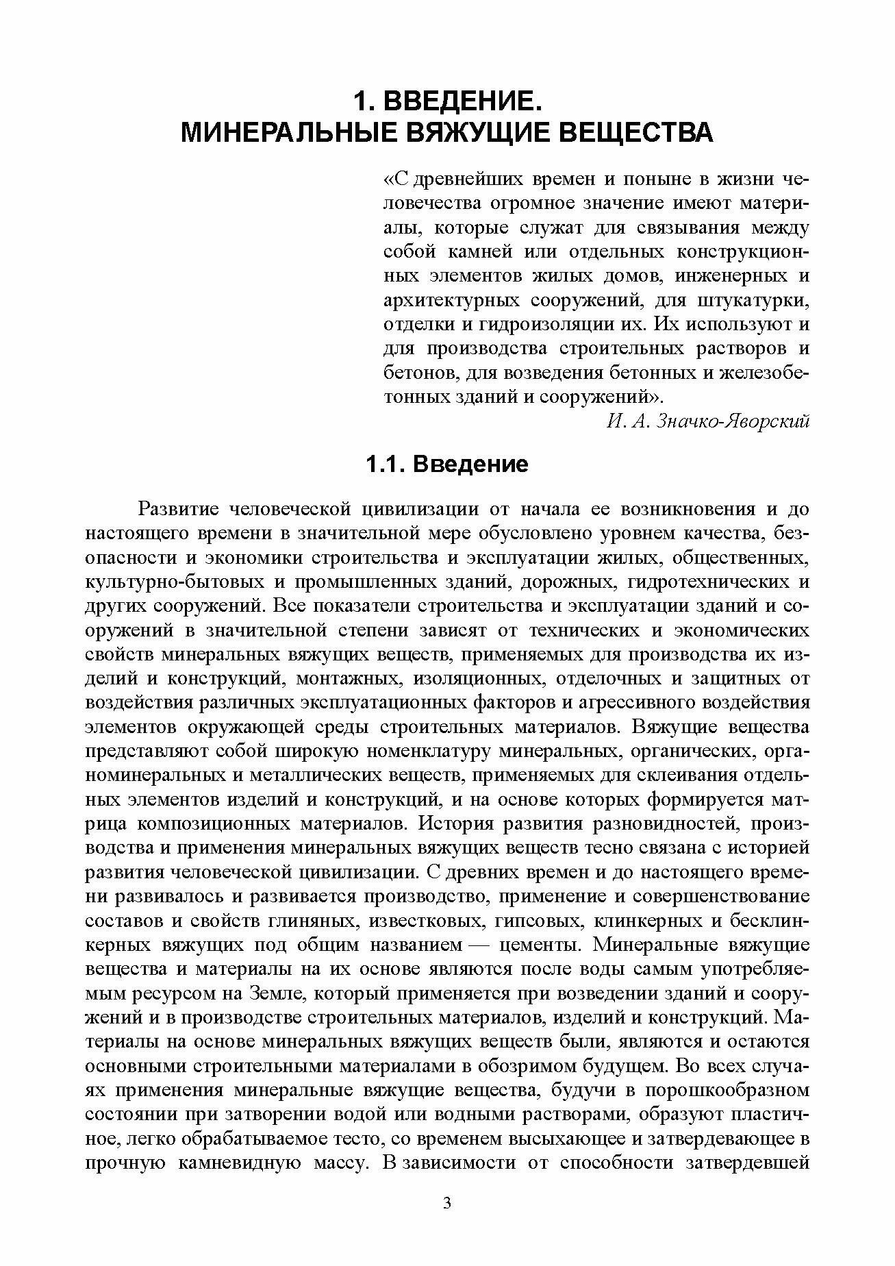 Приведены сведения о происхождении и запасах сырьевых ресурсов производства минеральных вяжущих; истории и перспективах их применения, научных исследований и разработок; разновидностях различных типов вяжущих и геоцементов; минеральных и химических добавках к вяжущим и материалам на их основе.
