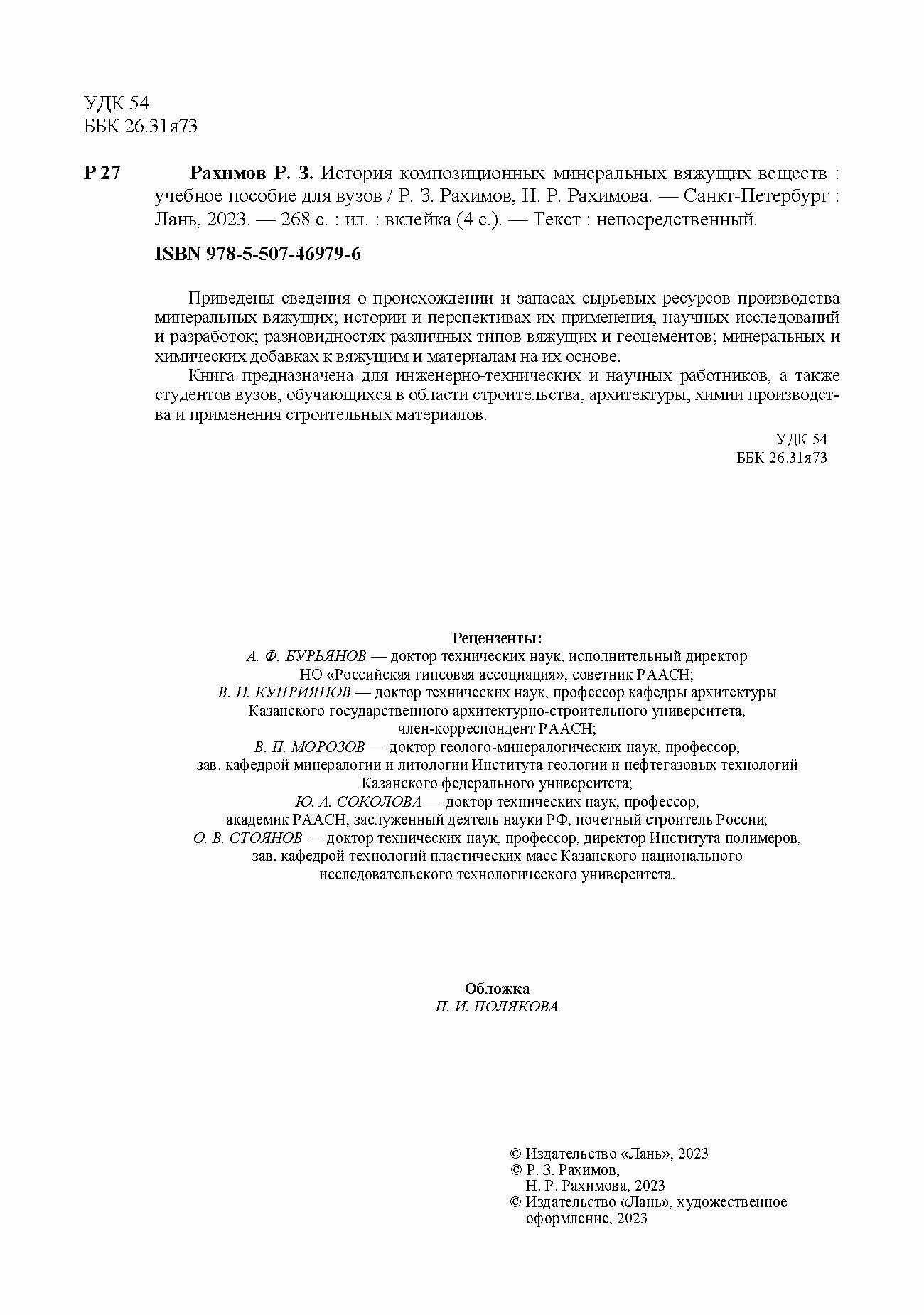 История композиционных минеральных вяжущих веществ. Учебное пособие (Рахимов Равиль Зуфарович, Рахимова Наиля Равильевна); Лань, 2023