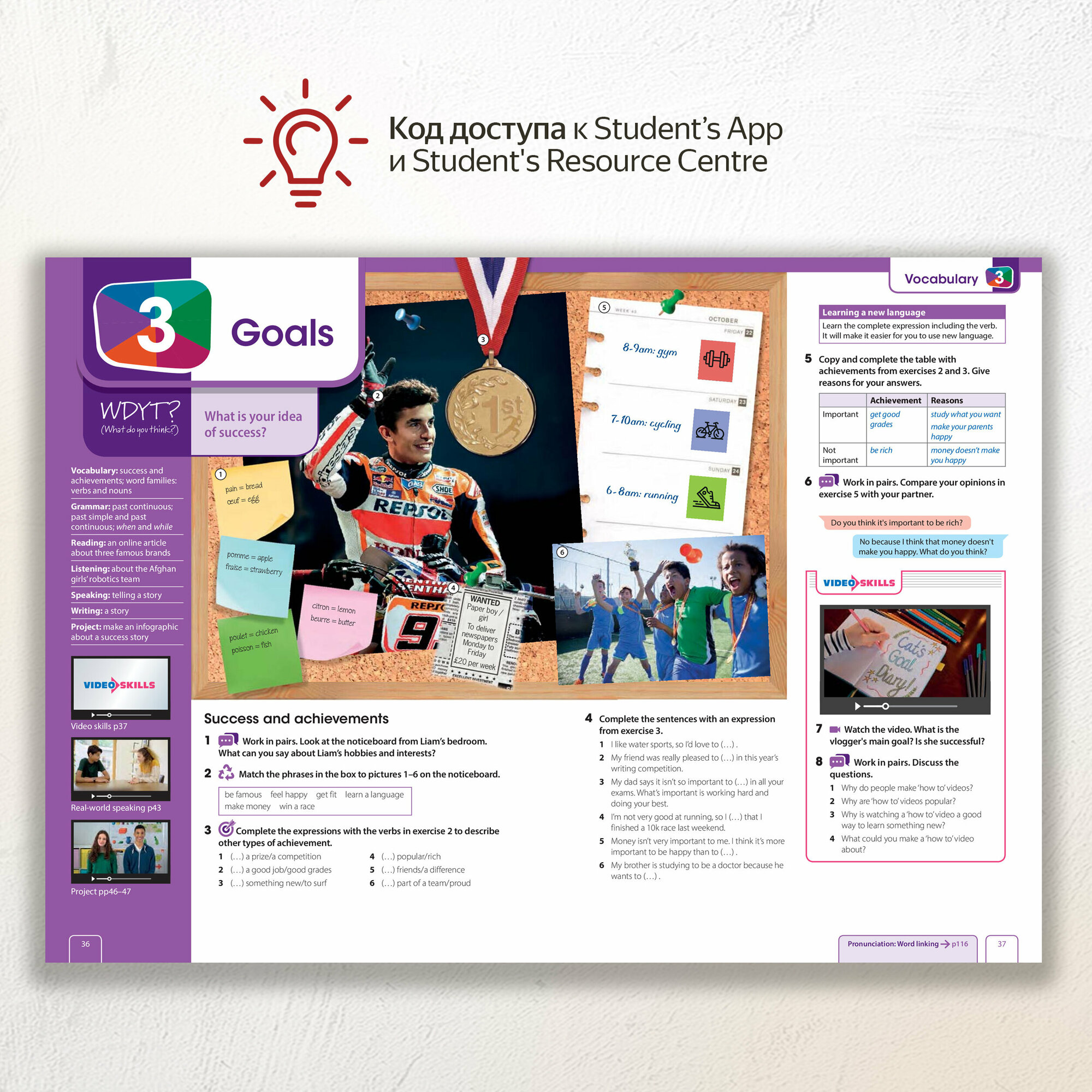 Учебник содержит код доступа к цифровой версии учебника и доступ к приложению для учащихся Student's App.