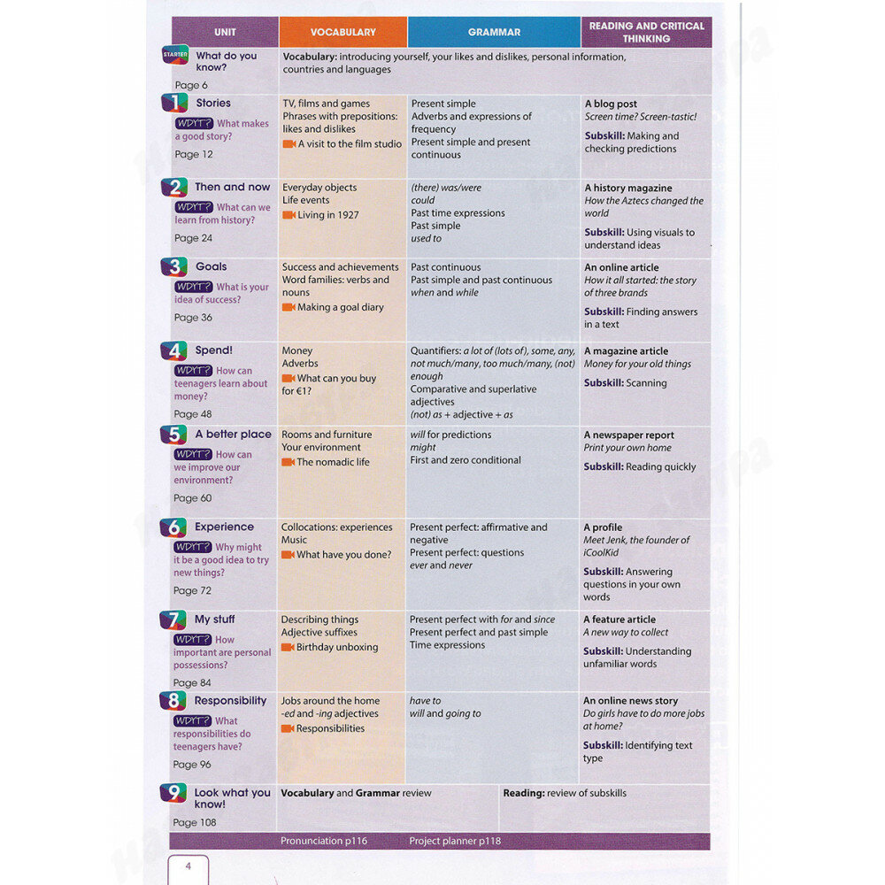 В каждом разделе учебника подростки собирают знания, язык и навыки, необходимые для того, чтобы иметь возможность ответить на WDYT? (What do you think?) вопрос, который открывает каждый блок.