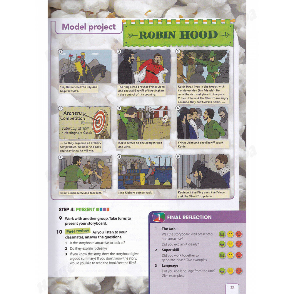 Что делает человека героем? Что такое идеальная школа? Зачем люди наряжаются? Каждое занятие начинается с вопроса, чтобы вызвать любопытство и обеспечить вовлеченность каждого студента. На протяжении всего курса учащиеся получают знания, язык и навыки, необходимые для ответа на вопрос в рамках совместного проекта в конце курса. Завершение проекта дает студентам возможность сразу же использовать новый язык и навыки.
