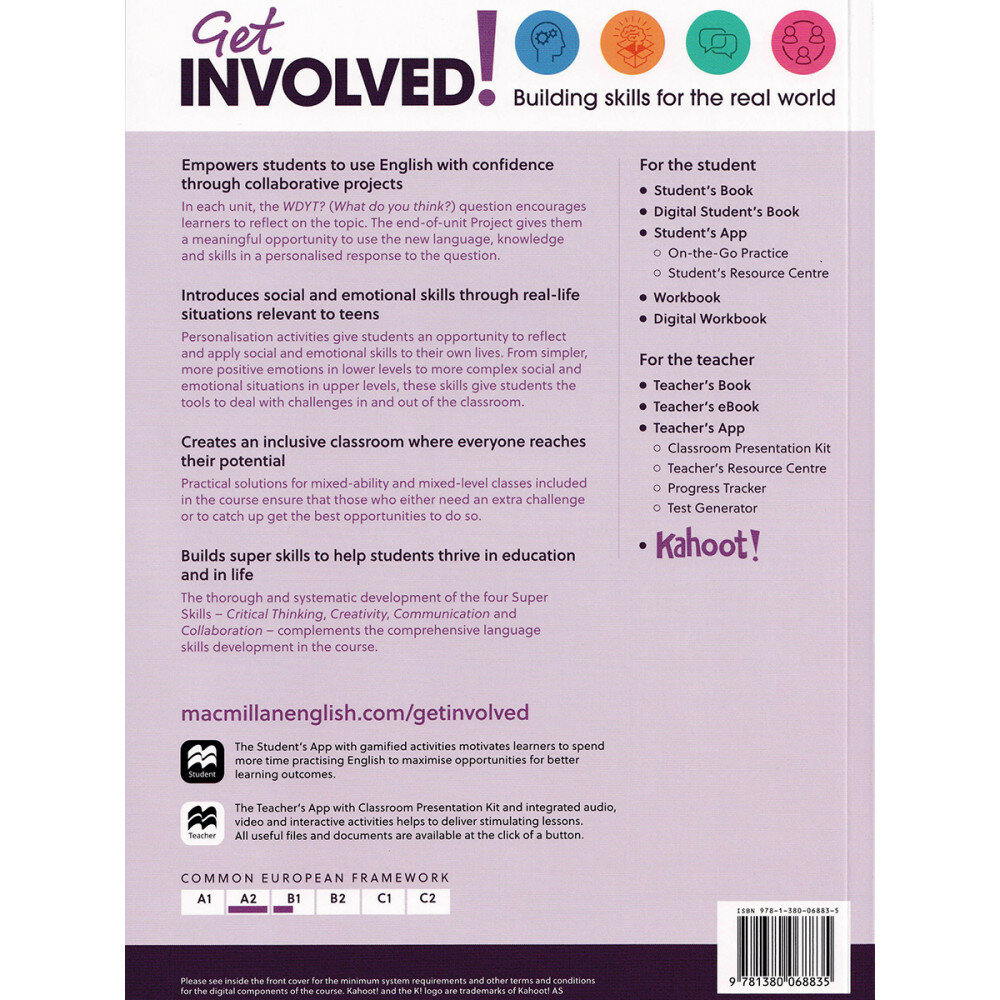 Get Involved! дает учащимся-подросткам чувство азарта и желание исследовать мир, который ждет их впереди. Это развивает их лингвистические навыки и супернавыки, побуждая их принимать участие в управлении своим будущим. Курс также позволяет учителям создать инклюзивный класс, где каждый раскрывает свой потенциал и имеет возможность проявить себя.