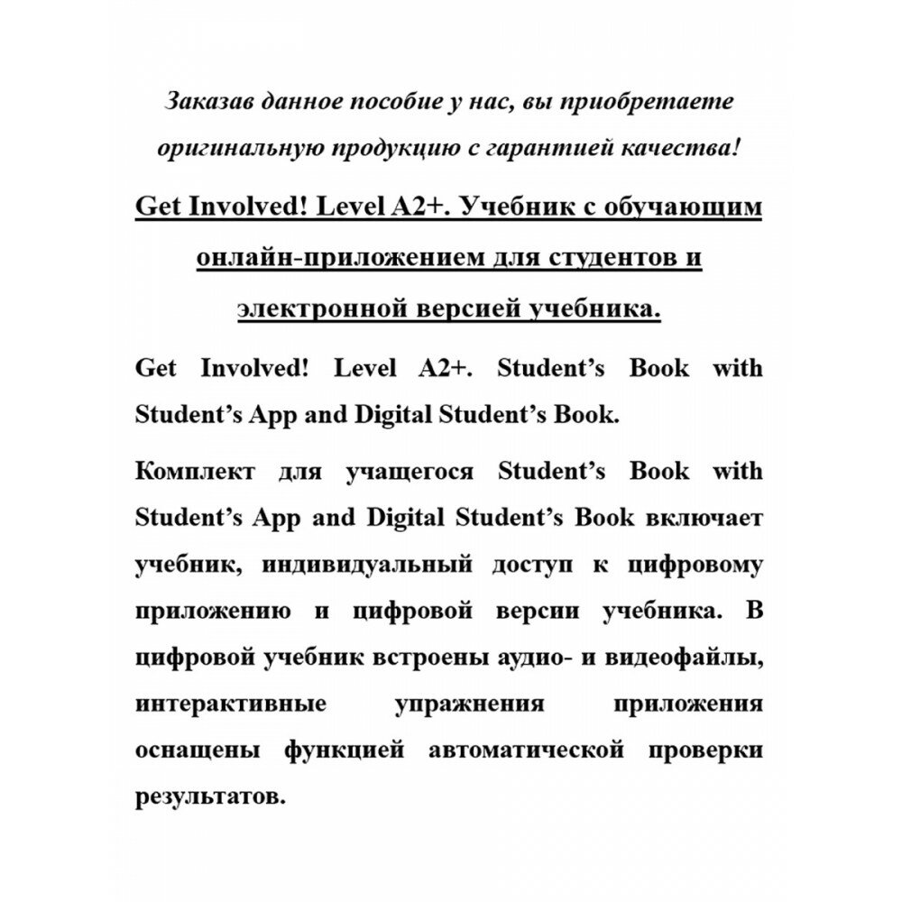 Сервис сравнения цен СкидкаГИД предлагает сравнить цены на товар «Книга: Get Involved! Level A2+. Student’s Book with Student’s App and Digital Student’s Book (Pickering Kate, Holley Gill); Macmillan Education, 2021»