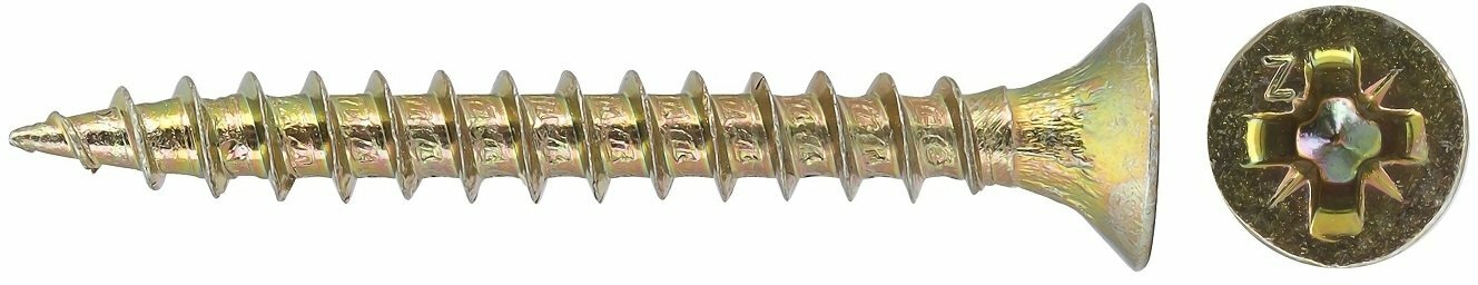 Шуруп универсальный с потайной головкой используется в случаях, когда требуется, чтобы головка шурупа не выступала над поверхностью материала после вкручивания.