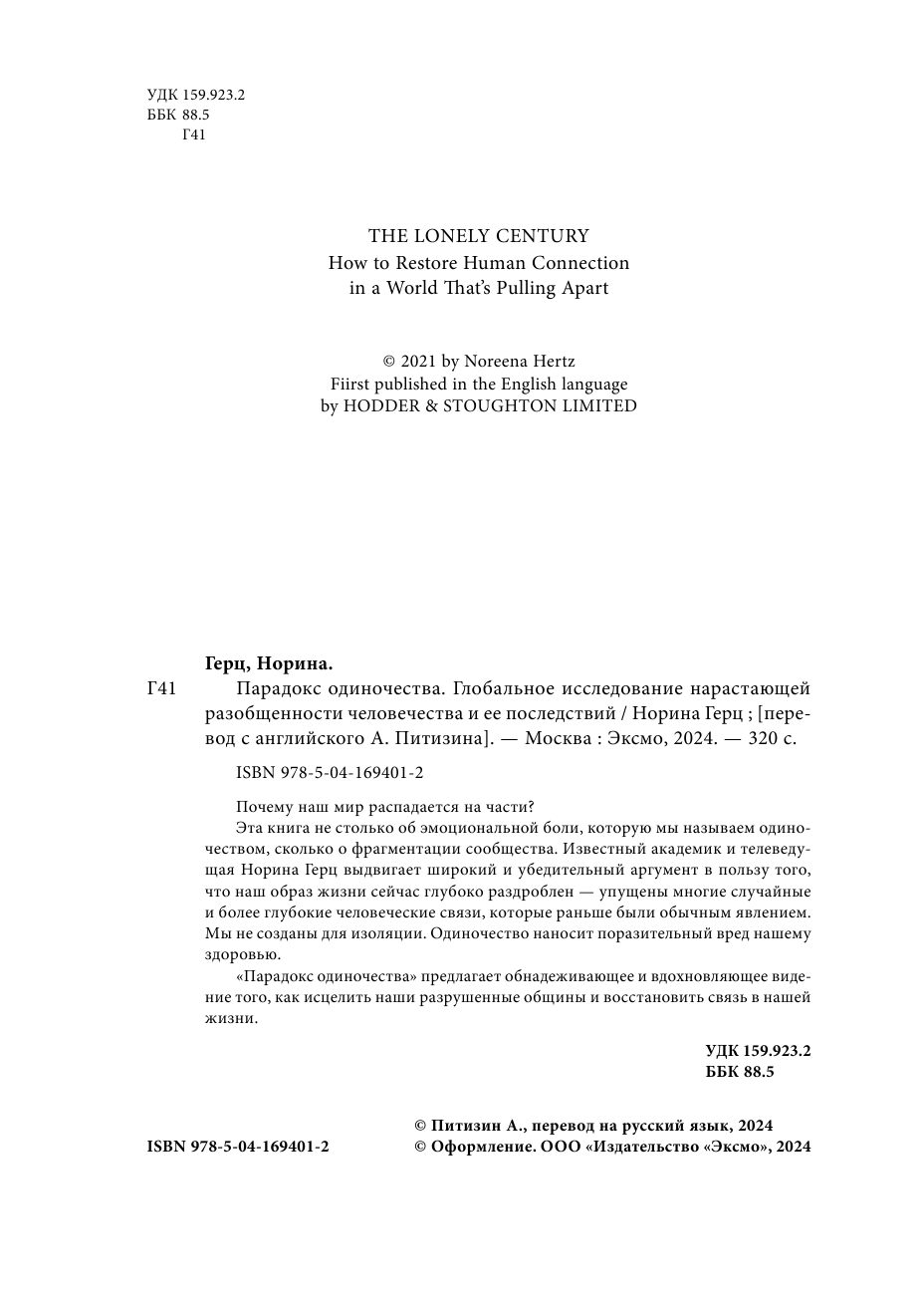 Поколение одиночек. Как оставаться человеком в мире где все разваливается (Герц Норина); ООО "Издательство "Эксмо", 2023