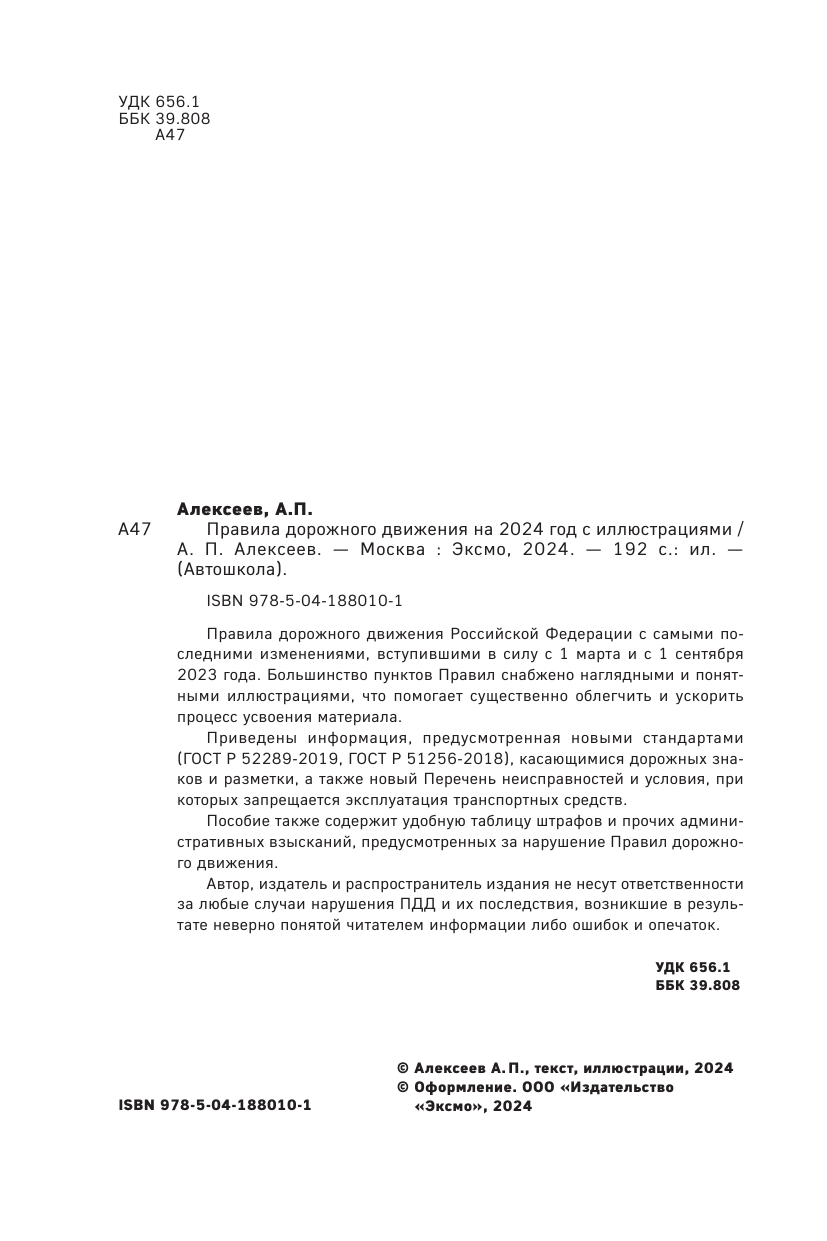 Правила дорожного движения 2024 с иллюстрациями (Алексеев Алексей Павлович); ООО "Издательство "Эксмо", 2024
