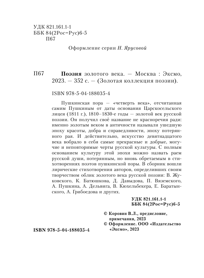 | Серия | Золотая коллекция поэзии |