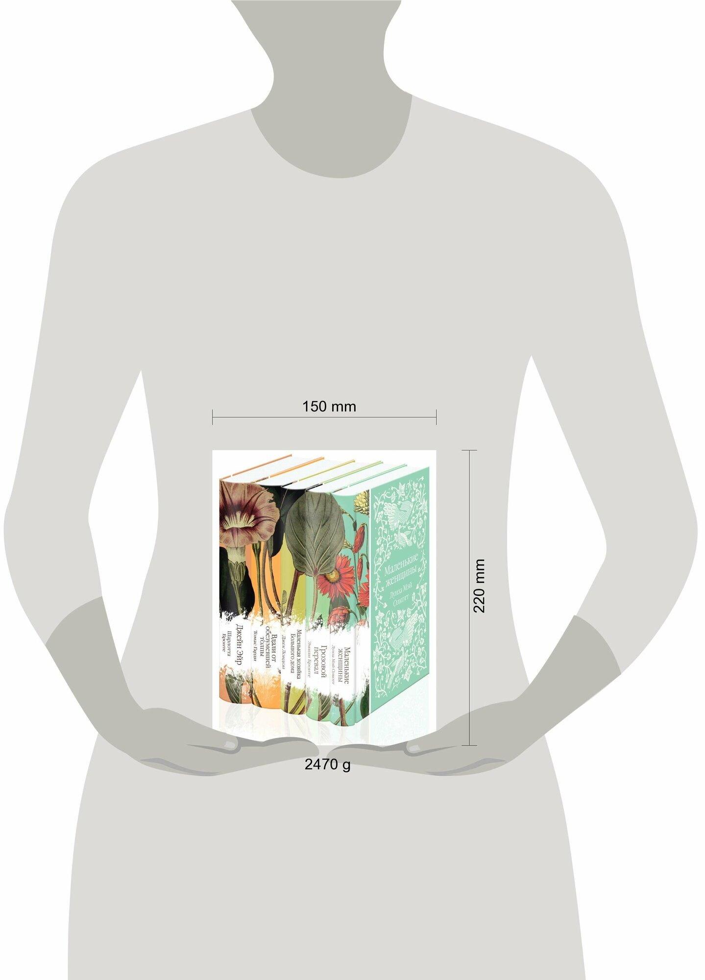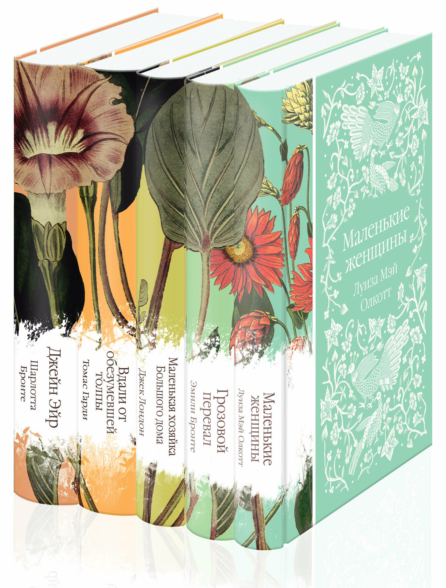В комплект вошли "Джейн Эйр", "Вдали от обезумевшей толпы", "Маленькая хозяйка большого дома", "Грозовой перевал" и "Маленькие женщины" — пять классических женских романов, которые приятно читать и приятно дарить.