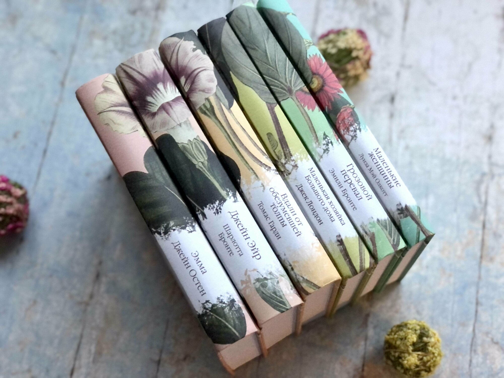 Коллекция элегантной классики — это пронзительная нежность, это сад, который шагнул к вам на книжную полку. Корешки коллекции собирают на полке цветочный орнамент.