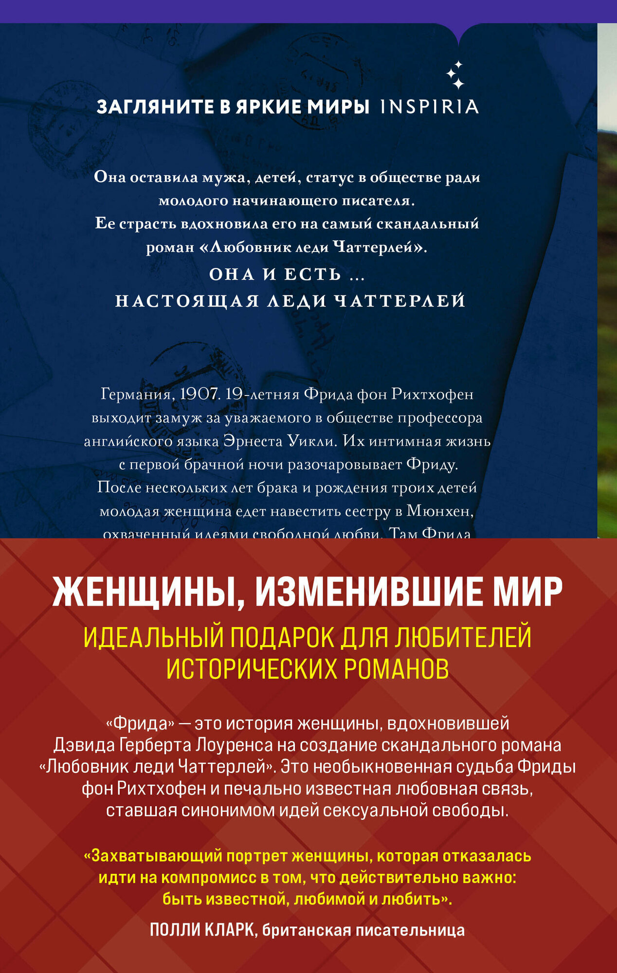 «Фрида» — это история женщины, вдохновившей Дэвида Герберта Лоуренса на создание скандального романа «Любовник леди Чаттерлей». Это необыкновенная судьба Фриды фон Рихтхофен и печально известная любовная связь, ставшая синонимом идей сексуальной свободы.