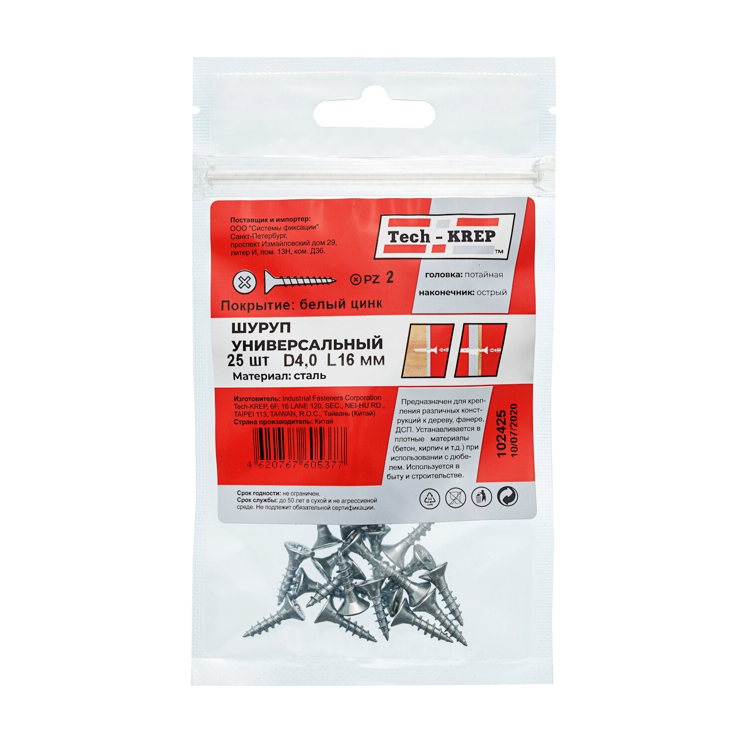 Саморез ШУц Tech-Krep 40х16 с потайной головкой 25 шт в пакете